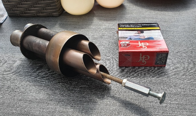 Diesen DB Killer Zieher, schiebt man dann in eines der 3 Rohre vom Killer, nun kann man über die Langmutter die beiden "Kegel" gegeneinander spannen und sie verkeilen sich im Rohr. An der Schloßschraube setzt man nun ne Zange an, gegen diese schlägt man dann mit einem Hammer, und zieht (treibt) den DB Killer dann heraus, ohne sichtbare Spuren zu hinter lassen.
