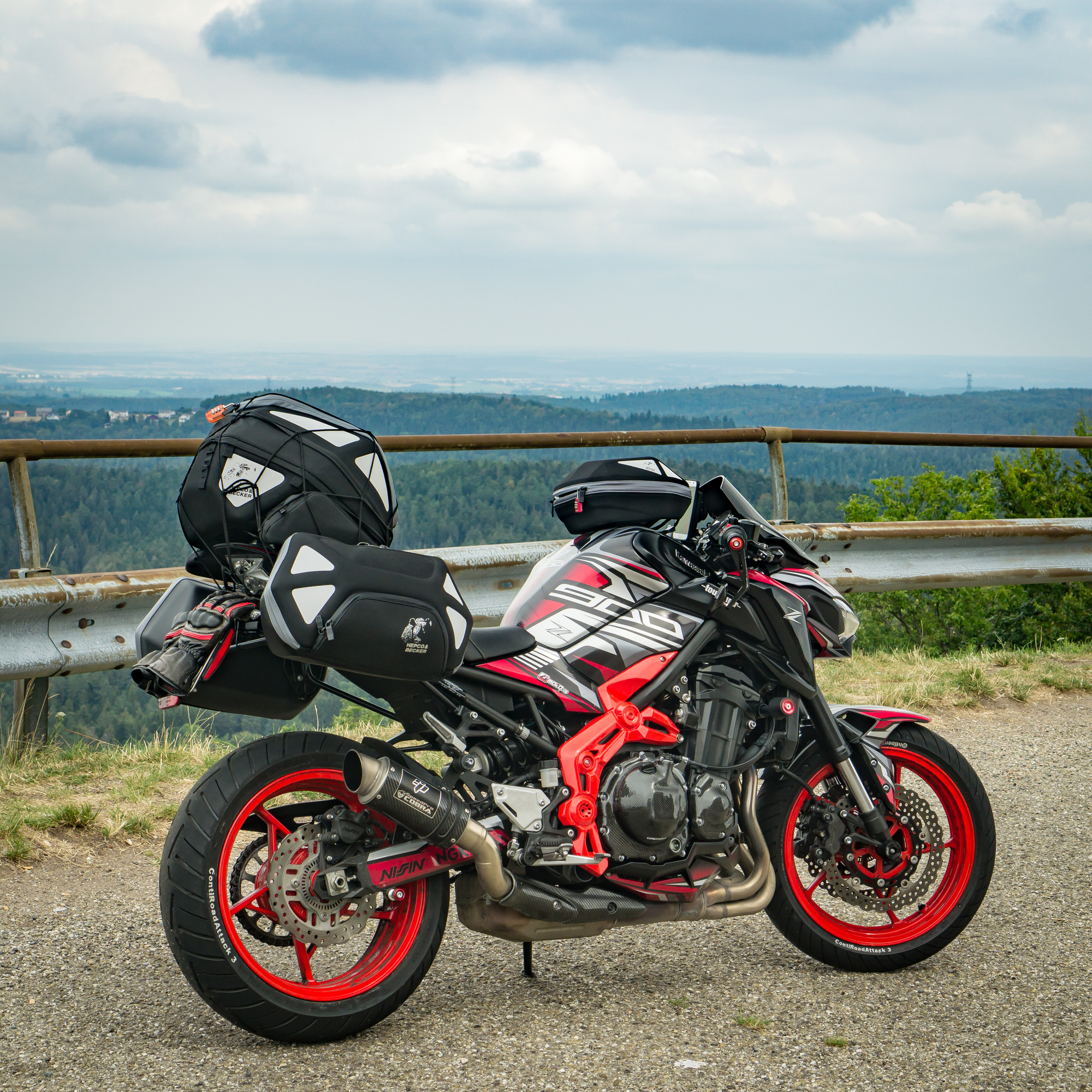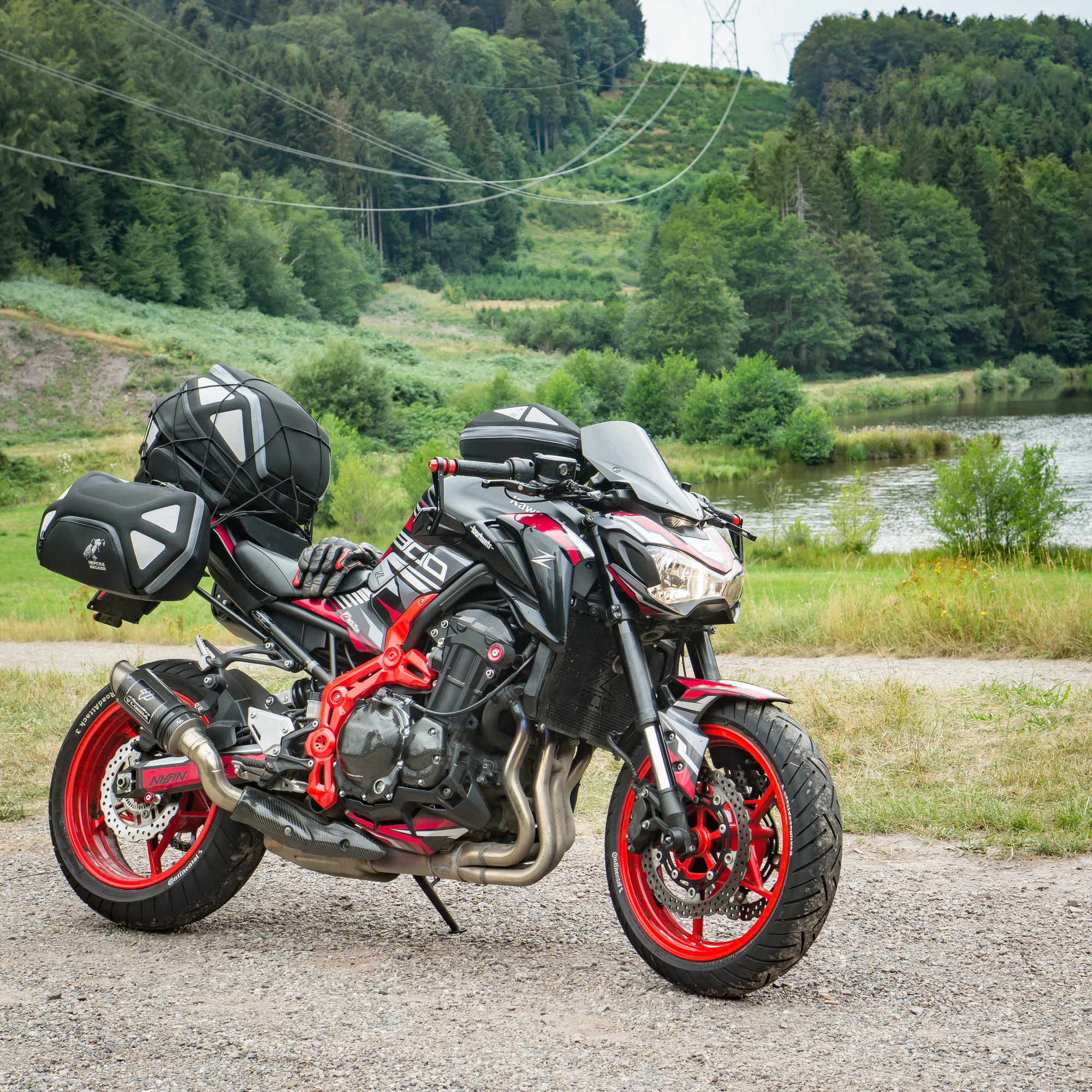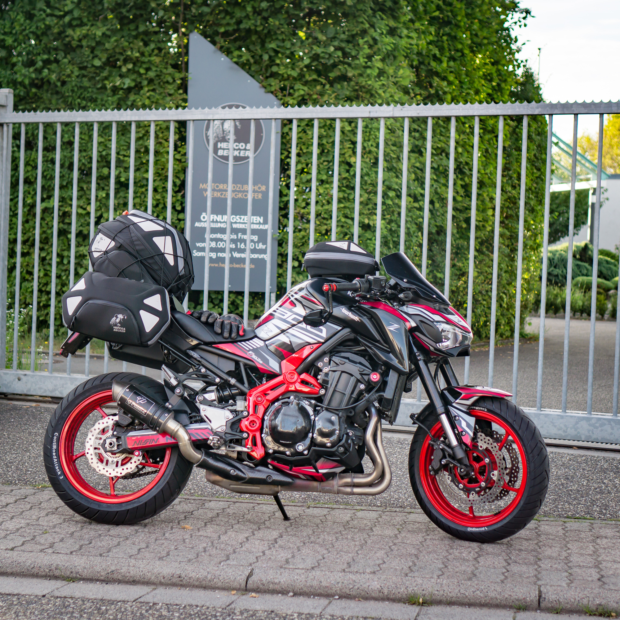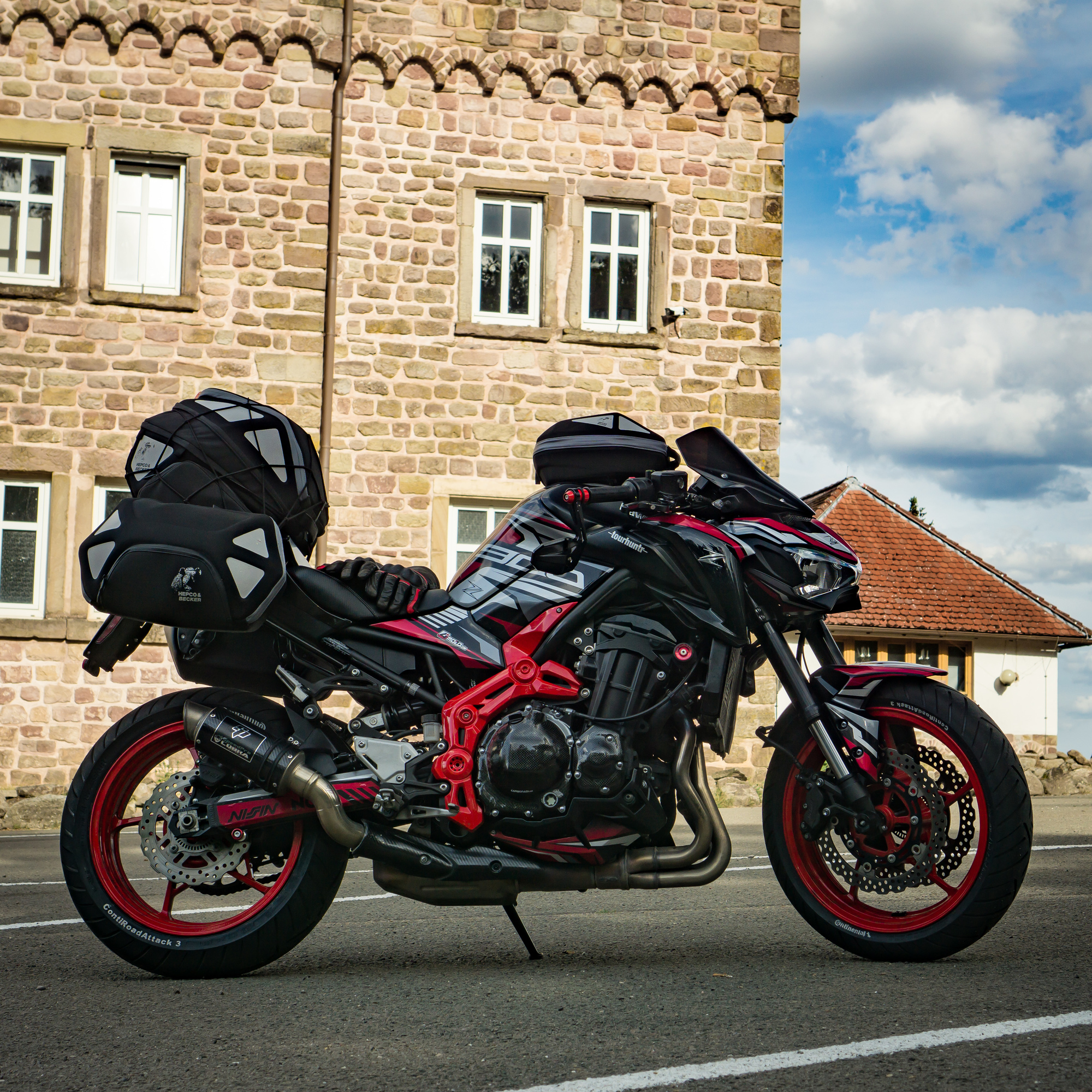 Das Problem: Wir wohnen 450 km voneinander entfernt (Wuppertal, Nürnberg) und wollen auf unseren sexy Naked Bikes (MT-09, Z900) nicht ständig Gepäck umherfahren und nicht jeden Tag ein- und auspacken.