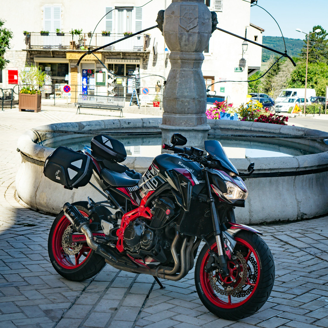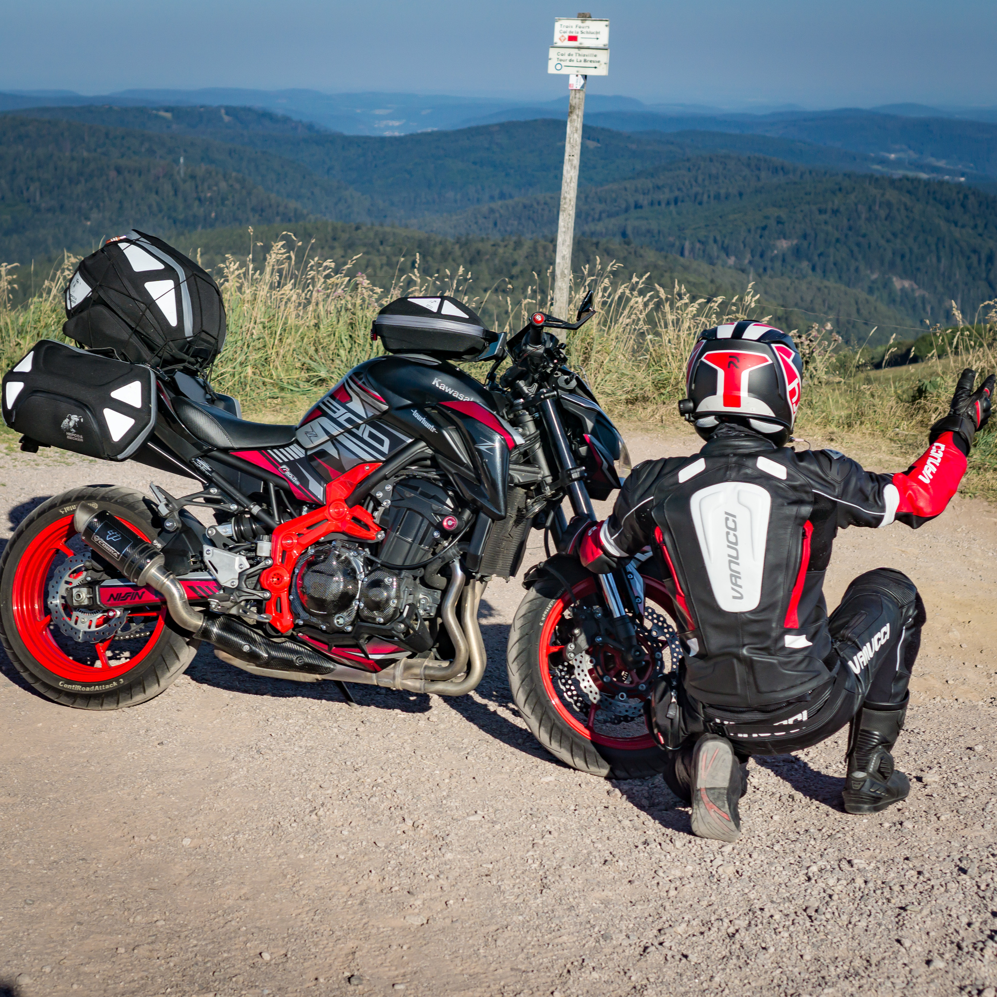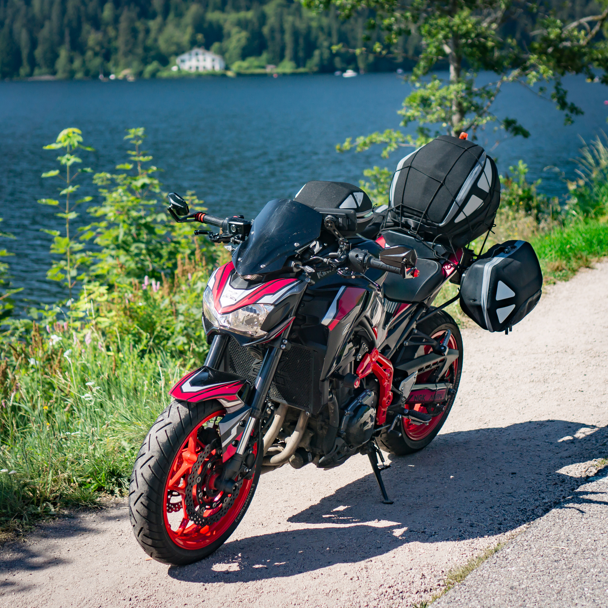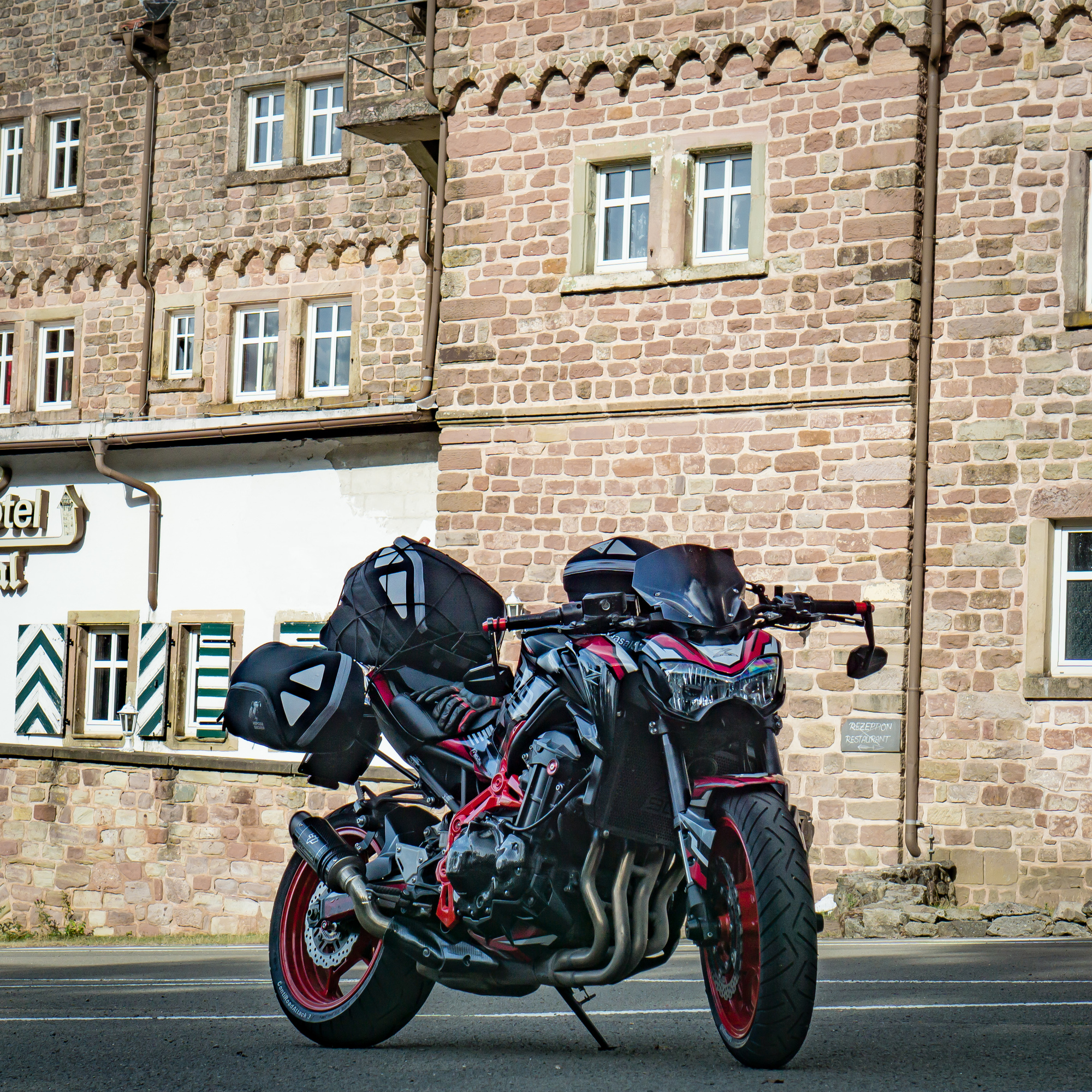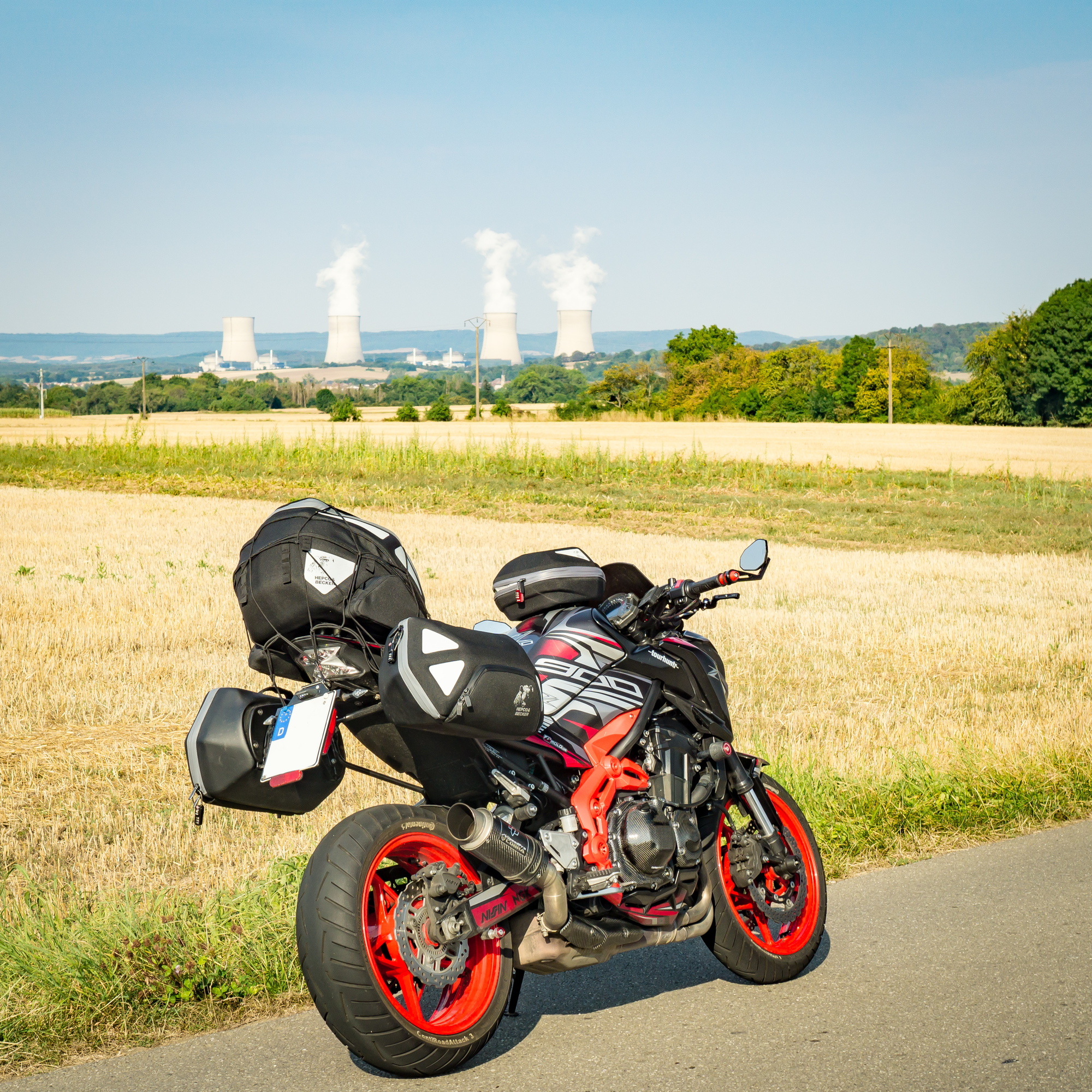 Die Z900 bekommt davor eine Inspektion von Dr. Sandman, neues Öl und neue Zündkerzen, die Kette wurde ebenfalls gespannt. Die Bremsbeläge werden als ausreichend beurteilt. Einen neuen Satz CRA3gab es ebenfalls, auch wenn ein Metzeler M7RR im Gespräch war, doch der wurde aufgrund der möglichen Nichthaltbarkeit ausgeschlossen. Ich erkundige mich vorher bei einem Kumpel aus Frankreich, wie das mit wechseln ausschaut und er sagt: schlecht, weil in Frankreich Anfang August Sommerferien sind und alle Motorradwerkstätten dann nur noch mit Termin arbeiten...