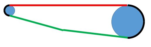 Siehst Du, und genau das ist nicht möglich. Entweder das kurze /lange Stück ist oben oder unten, so lange die Gesamtlänge gleich ist, kann das geometrisch nicht zu unterschiedlichem Durchhang führen. Geht einfach nicht. Denn das Rad ist ja drehbar dazwischen und gleicht es aus denn oben ist die Kette beim Messen immer stramm.