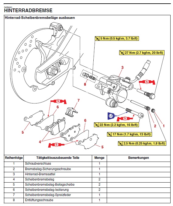 Beim Zusammenbau hatte er Probleme, den Bremssattel drauf zu bekommen, und ich habe gesehen, wie er die beiden Schrauben von Anfang an schon mit Kraft mit der Ratsche angezogen hat. Hab mich da schon gewundert. Als er fertig war und ich das Moped rausfahren wollte, war das Hinterrad fest und ließ sich kaum bewegen.
