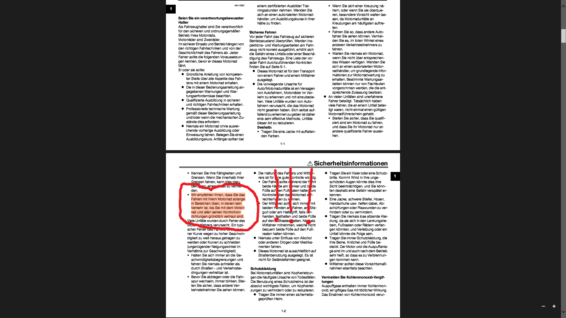 Alles anzeigenMein Händler gibt mir bei jeder Maschine eine gründliche Einweisung. Dabei erwähnt er auch dass die Bremsen am Anfang erst eingefahren werden müssen, oder dass die Reifen neu sind, also Vorsicht geboten ist. Und dann gibt es noch die Bedienungsanleitung die ich natürlich wenn ich einen neuen Bock habe, erst lese bevor ich los fahre. Ha ha.