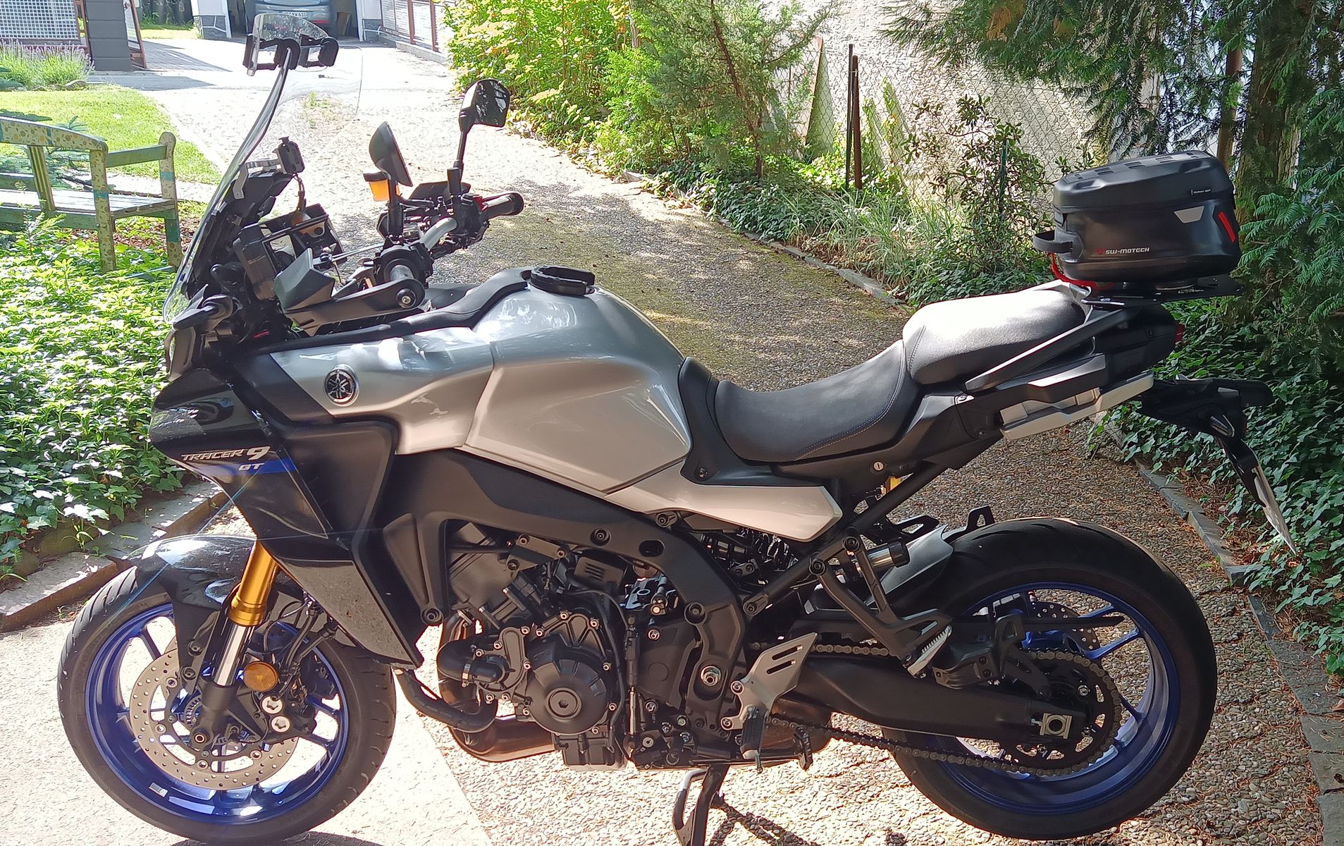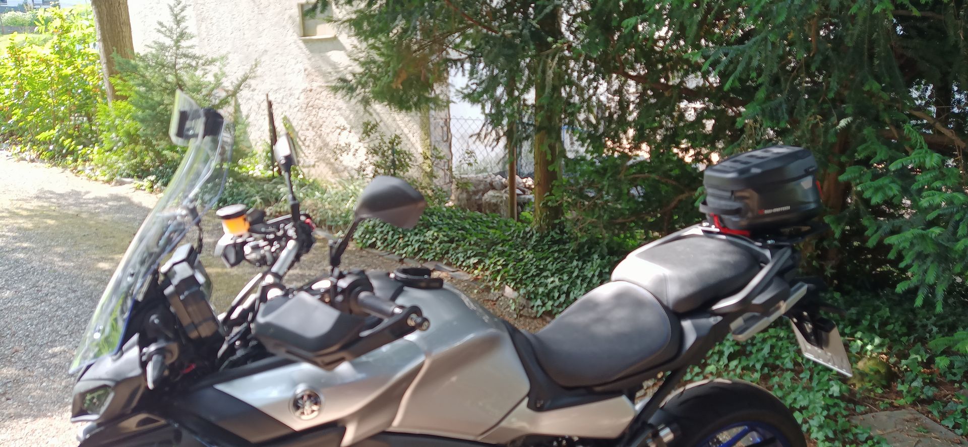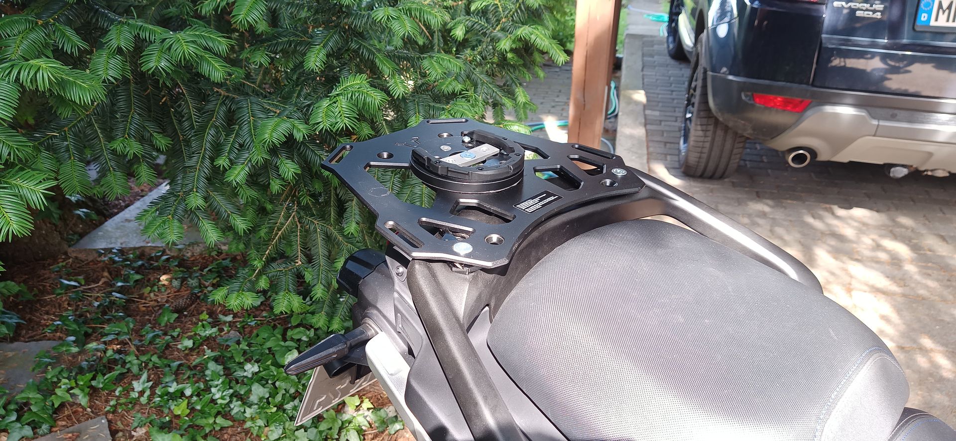 Warte ja noch immer auf meinen Gepäckträger. Schwimt noch im Suez Kanal. Hab mir für den Urlaub jetzt Mal von SW-Motech ne Brücke angepasst, damit die Gepäcktasche ne Auflage hat und die MRA Spoilerscheibe von meiner ehemaligen RN57 angebaut.