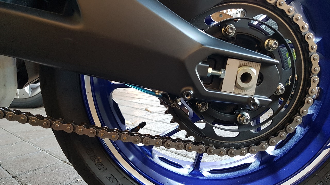 Bilder sagen mehr als Worte. Wo glaubt Ihr, verkanntet sich die Kette beim Reißen, schneller in den Schrauben ? Bei Triumph oder Yamaha. Bei Yamaha Natürlich den Schutz wegdenken.