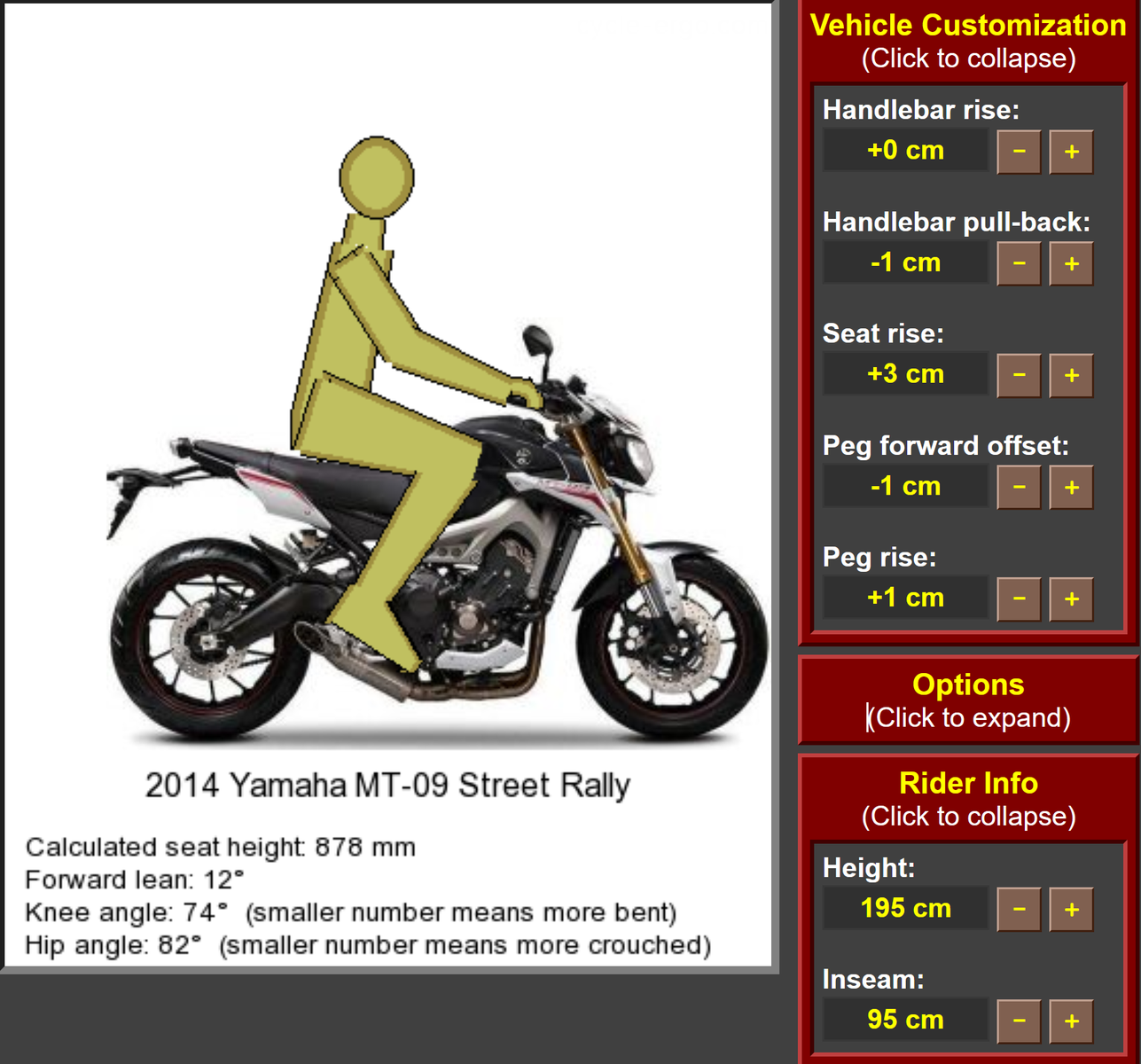 Bei 195cm und 95 Schrittlänge ergeben sich diese Sitzhöhen:
