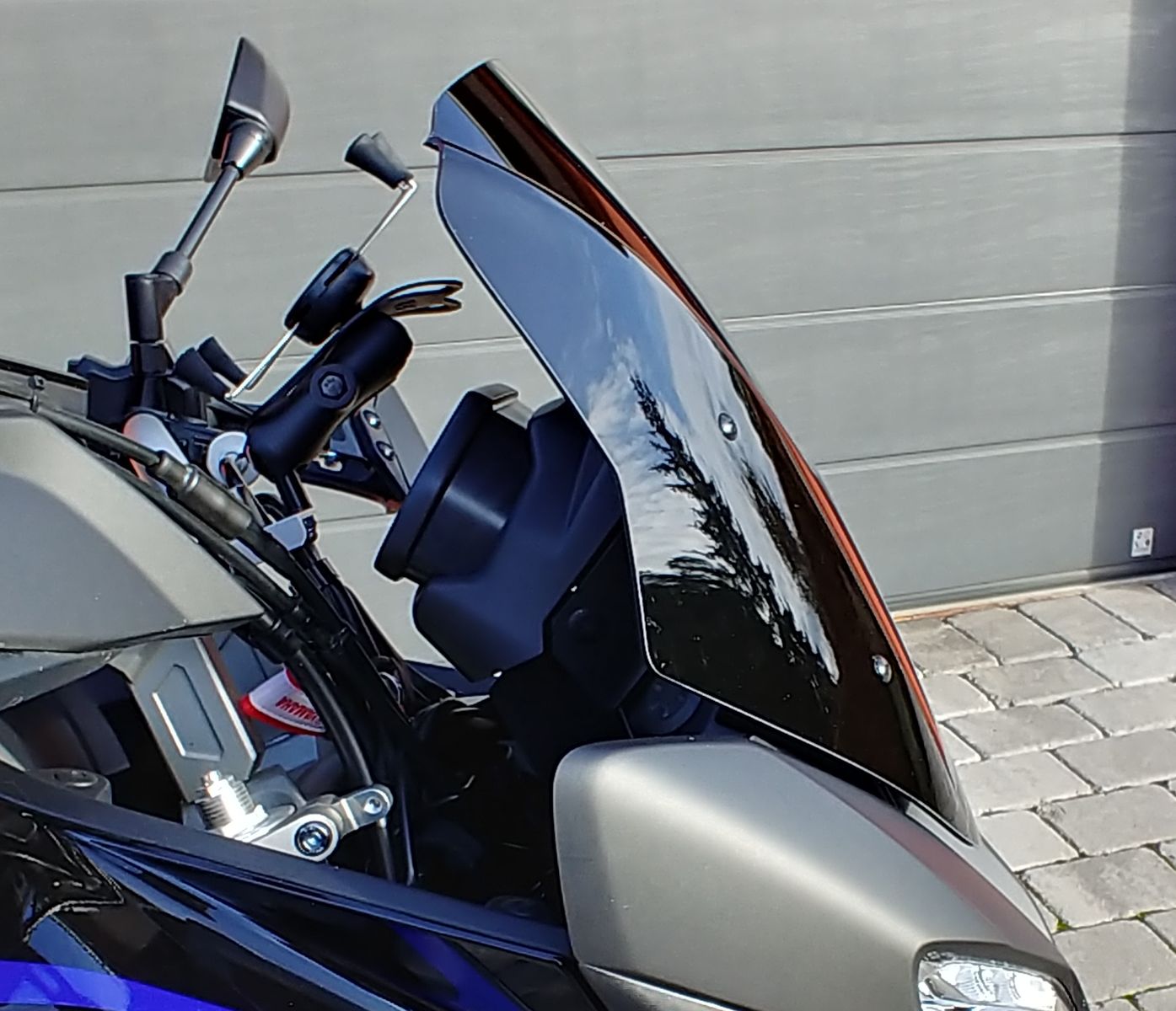 Sehr gut auch die Lösung mit den Gewinden in den Lenkerklemmböcken. Hier lässt sich sehr einfach ein Halter für ein Smartphone oder Navi anbauen. Habe dort als Provisorium ( zum Test ) ein Blech mit RAM-Mount Kugel für einen RAM X-Grip Smartphone Halter montiert. Was soll ich sagen, Perfekt - nichts hält länger als das Provisorium.