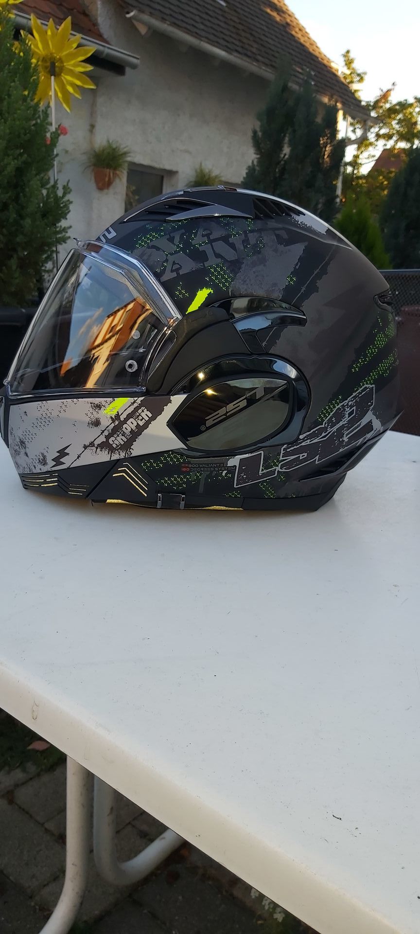 Modular Helm = Klapphelm, der auch als Jet Helm genutzt werden kann (Kinnteil kann nach hinten geklappt werden, Visier bleibt vorn).