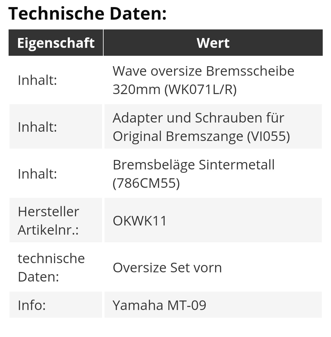 Ich habe für die MTs (beide RN29) die Bremsscheiben Kits bestellt.