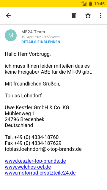 Die Oversize-Scheiben sind die: WK071L / R und die sind eben nicht in der ABE für die MT-09 vermerkt.