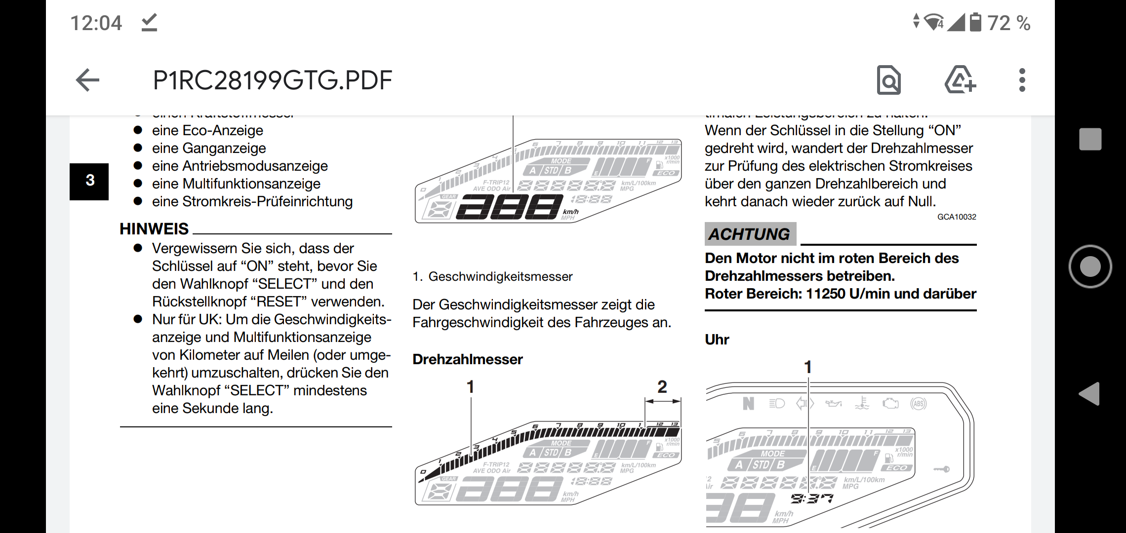 Jetzt, nachdem wieder anklemmen, hat die Maschine plötzlich 3870 km bei der ODO Anzeige (Gesamtkilometer).