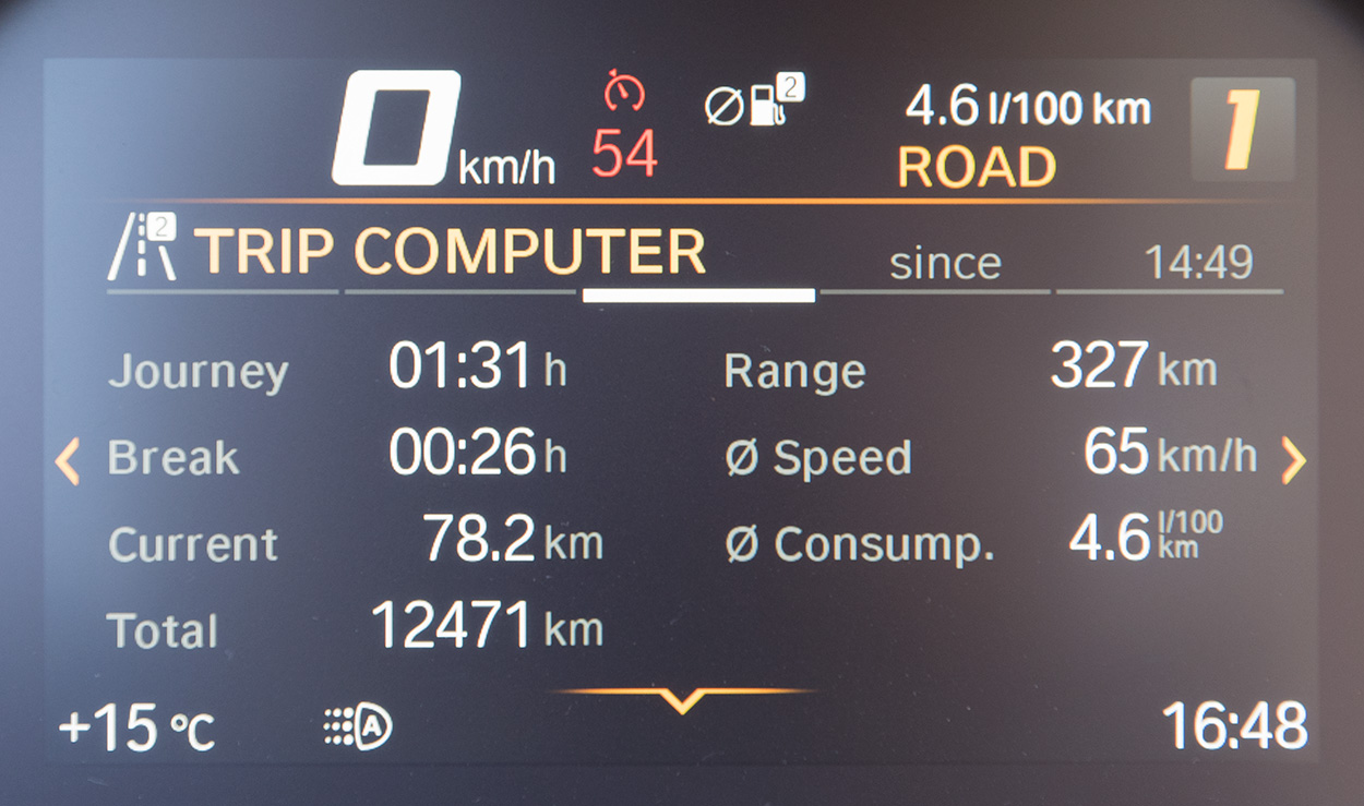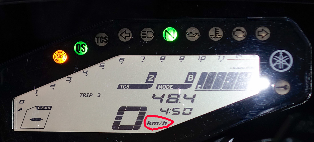 Alles anzeigenJa, tatsächlich, kommt gut hin: 6100/1,6 = 3812 miles. Trotzdem fällt mir jetzt erst auf, daß bei meiner MT09 der Kilometerzähler ohne Einheit da steht (48.4 auf dem Bild hinter TRIP 2). Auch bei der Uhrzeit fehlt eine Angabe ob es AM oder PM ist und es gibt keine Einstellung auf 24h. Bei meiner BMW ist das der Fall. Einsparmaßnahme