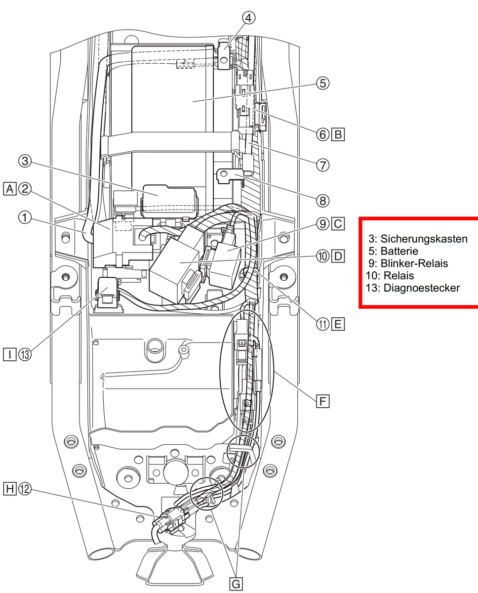 Sattel runter, Relais in Gummipuffer finden, aushängen, Stecker ab, Stecker aufs Neue, in Gummipuffer, ferddisch.