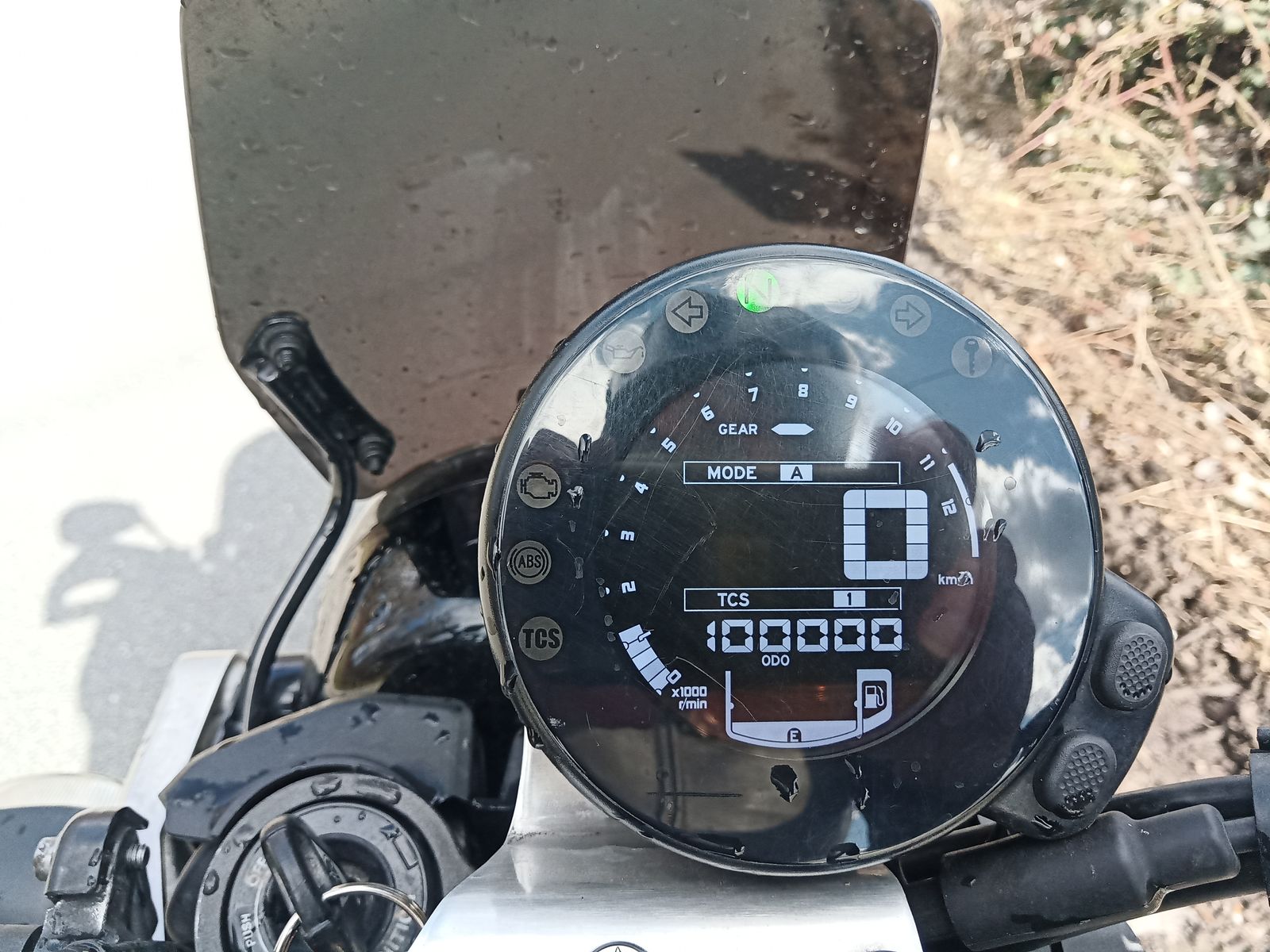 am Freitag war es "endlich" soweit - ich konnte überprüfen was geschieht, nachdem man > 99.999 km gefahren ist. Hätte ja alles passieren können: Tacho springt wieder auf Null oder die Elektronik denkt: "Das kann doch nicht wahr sein!" und schaltet vorsichtshalber mal alles ab. Aber so dramatisch war es nicht. Die Anzeige erweiterte sich einfach um eine Stelle und damit bin ich bis mir jemand was anderes sagt Deutscher- und vielleicht auch Europameister im XSR-Fahren.