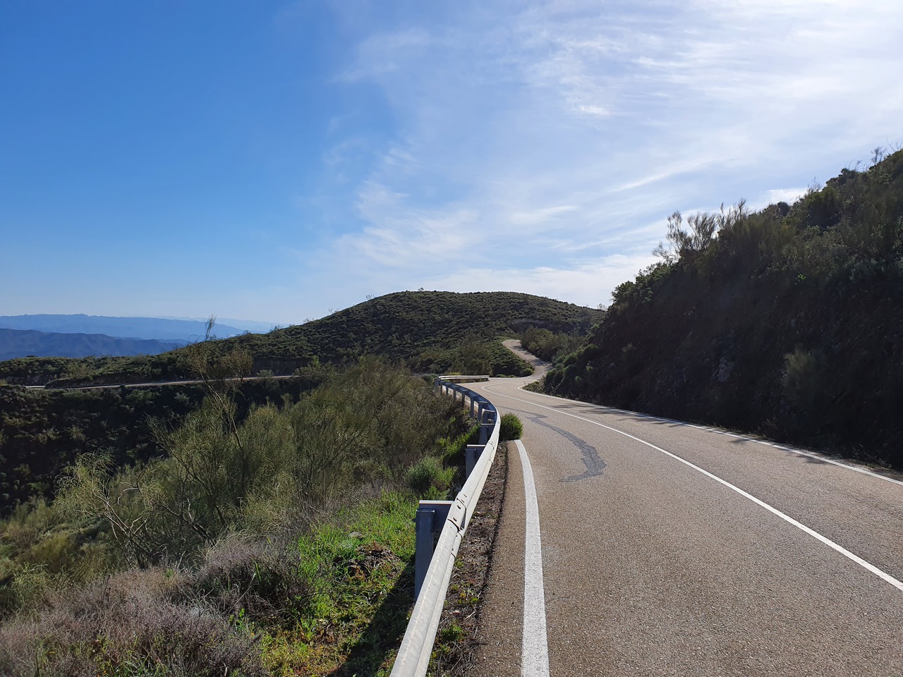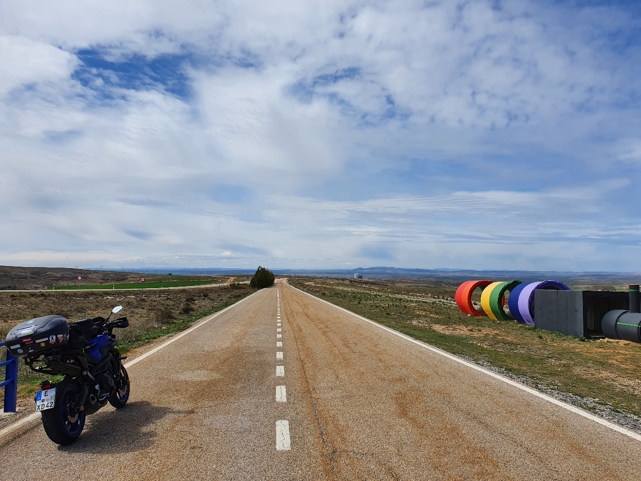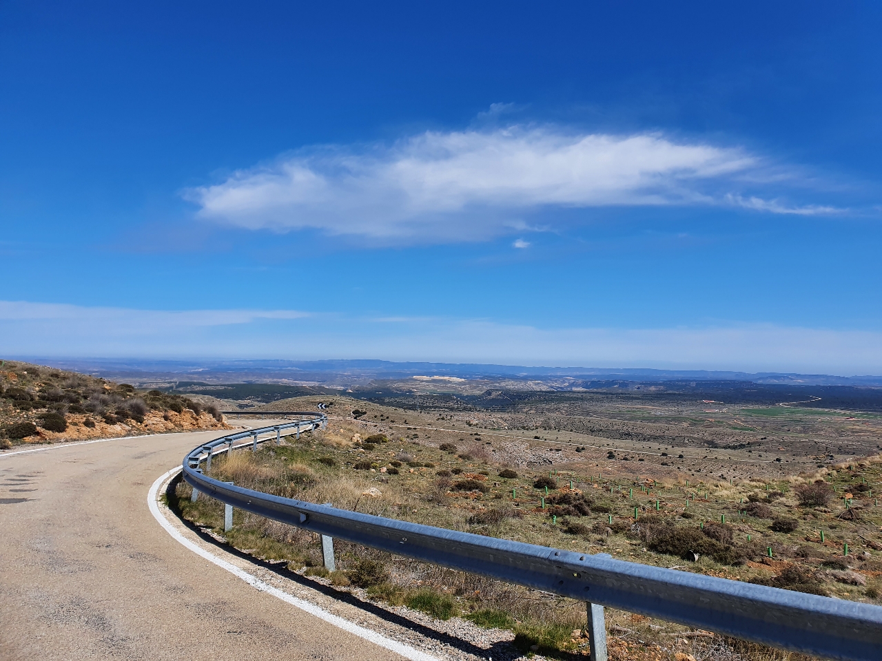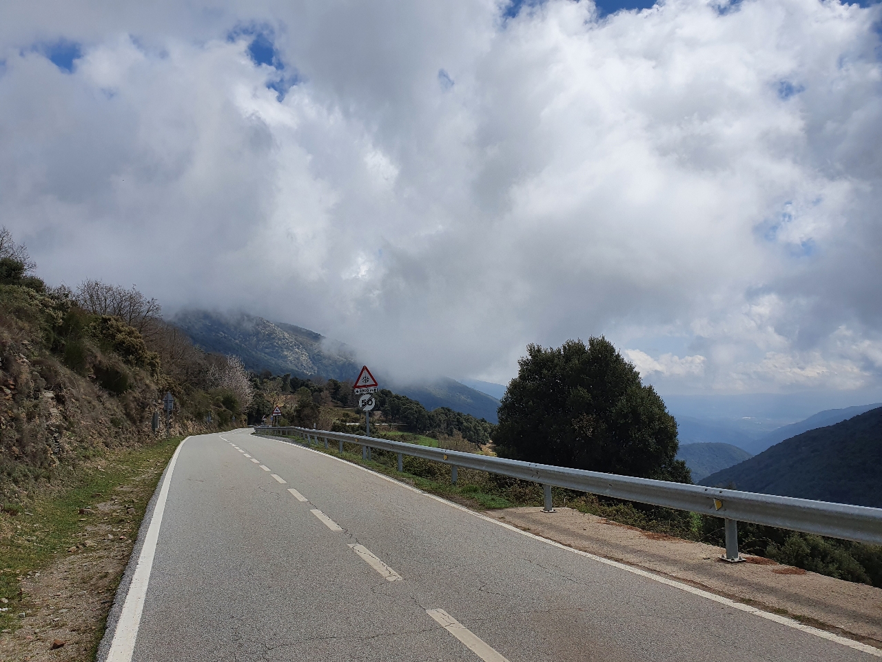 1. Durch Frankreich auf eigener Achse, quer durch Spanien, nördlich an Madrid vorbei, und dann Portugal von Nord nach Süd runter. In Portugal hätte mich jemand begleitet, daher gemütliche 350 km-Tagesettappen. Vom Südzipfel Portugals aus entlang der Gebirge in Südspanien nach Osten, insbesondere Andalusien, und im Südosten dann das Motorrad stehen lassen und heim fliegen. Dort 2 Monate arbeiten, und dann zurück fliegen, Motorrad aus dem Parkhaus oder Hotel ziehen, und: