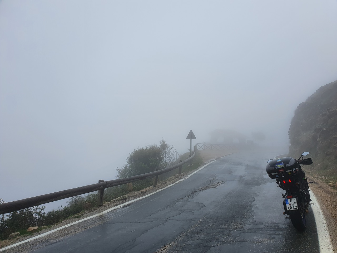 Plan 1 war schon hinfällig, als der Mitfahrer abgesagt hat. Dass man sich in Spanien nicht bewegen darf, hilft auch nicht. Durch Frankreich kommt man vielleicht noch durch, aber dann? Tja, dann fragen wir doch mal jemanden, der sich damit auskennt, und seit Jahren den Winter in Spanien verbringt, zwecks Surfen und Motorrad fahren: Hier ist alles normal. Am Wochenende wird auf Motorradstrecken kontrolliert. Durchreise ist erlaubt. Dann fragen wir zwei französische Motorradfahrer: Einer sagt alles verboten, der andere sagt jeder macht was er will. Okay, damit kann ich arbeiten.