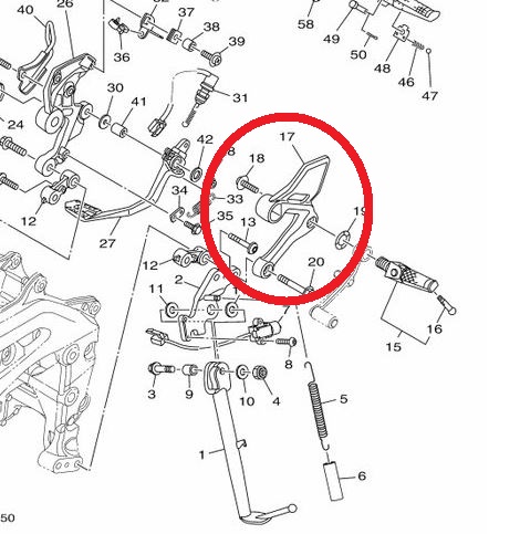 ich suche einen Fußrastenträger für die Fahrer Fußraste links. Im Bild habe ich das Teil markiert, Nummer 17.