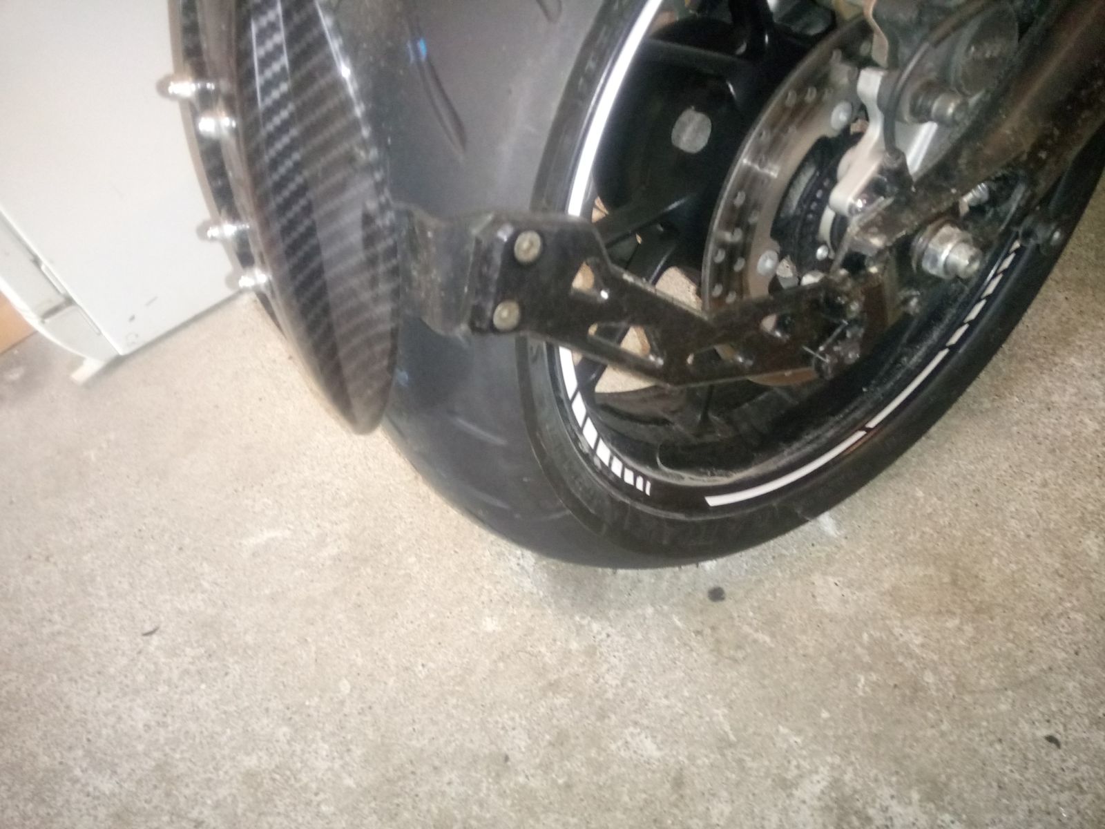 An der Schwinge einen neuen Arm mit einem, Spritzschutz montiert. Hat sich dies Wochenende schon bewährt.