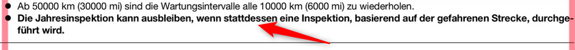 Da sollte, muss man auch auf Nummer Sicher gehen und sollte nie diese +10.000 km überschreiten. Sobald dies geschieht begibt man sich freiwillig in eine Abhängigkeit des Herstellers / Vertragshändlers. Jedes Überschreiten dieser Laufleistung entbindet den Hersteller von seiner freiwilligen Garantieleistung. Man sollte als Fahrzeughalter also sich gegenüber selber eine "Null-Toleranzhaltung" einnehmen und nie darauf spekulieren das man noch eine Garantie/Gewährleistung erhält wenn man die 12 Monate bzw. 10.000 km überschritten hat.