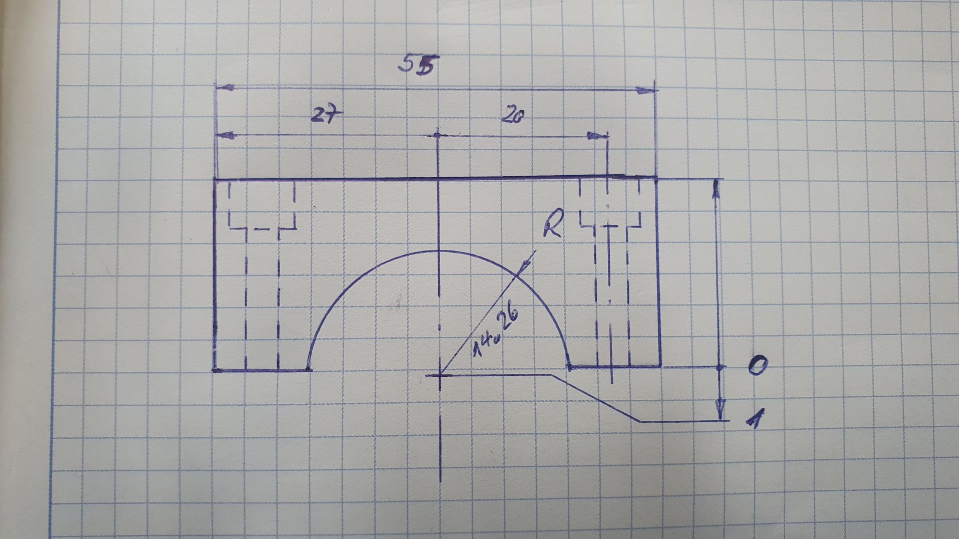 Programm geschrieben, um später das Teil damit zu fräsen, aber schon bald hab ich mich nicht mehr an die Skizze gehalten, weil mir beim Programmieren andere, bessere Einfälle kamen und dann hab ich's einfach aus dem Kopf ohne Zeichnung weiterprogrammiert.