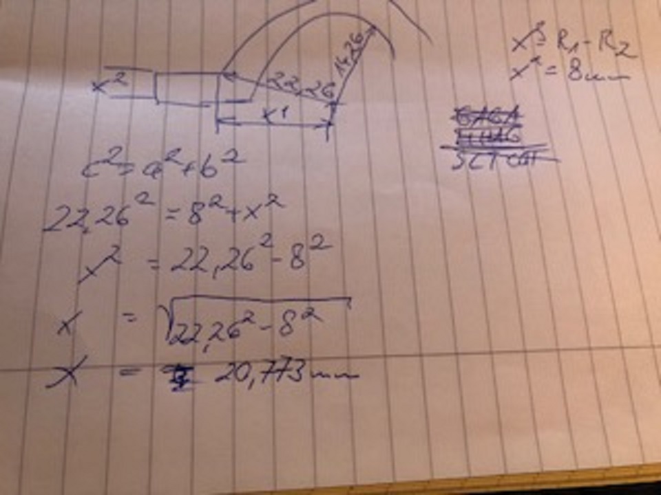 Hab ich eine Wandstärke von 8 mm, müsste der Aussendurchmesser folglich (wenn ich die Wandstärke überall gleich haben will) logischerweise einen Radius von 22.26 mm haben, siehe Bild 1: