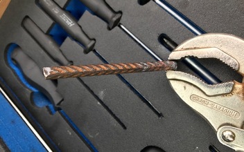 Beim Reifenhändler stellte sich heraus das der Angel die beiden Löcher so perfekt abgedichtet hat das sich der Luftdruck im Reifen nicht veränderte. -
