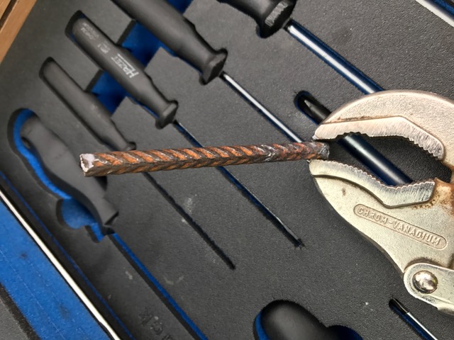 Beim Reifenhändler stellte sich heraus das der Angel die beiden Löcher so perfekt abgedichtet hat das sich der Luftdruck im Reifen nicht veränderte. -