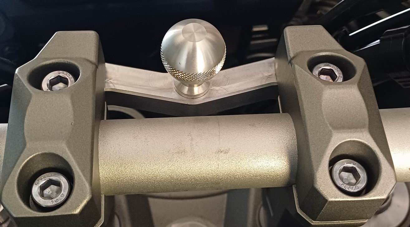 Ich konnte nicht mehr warten und habe mir jetzt diesen Navi-Halter verbaut. Reiner konnte bisher nichts liefern. Mit der RAM-Kugel habe ich das Navi unten und da taugt es mir viel besser. Das komplette NAVI ist auch schön abnehmbar und es verbleibt bis auf die Kugel nichts am Motorrad. Die Kugel samt Halterung ist wertiges und präzises Alu-CNC Material. Die Gewinde sind schon serienmäßig an der Tracer vorhanden.