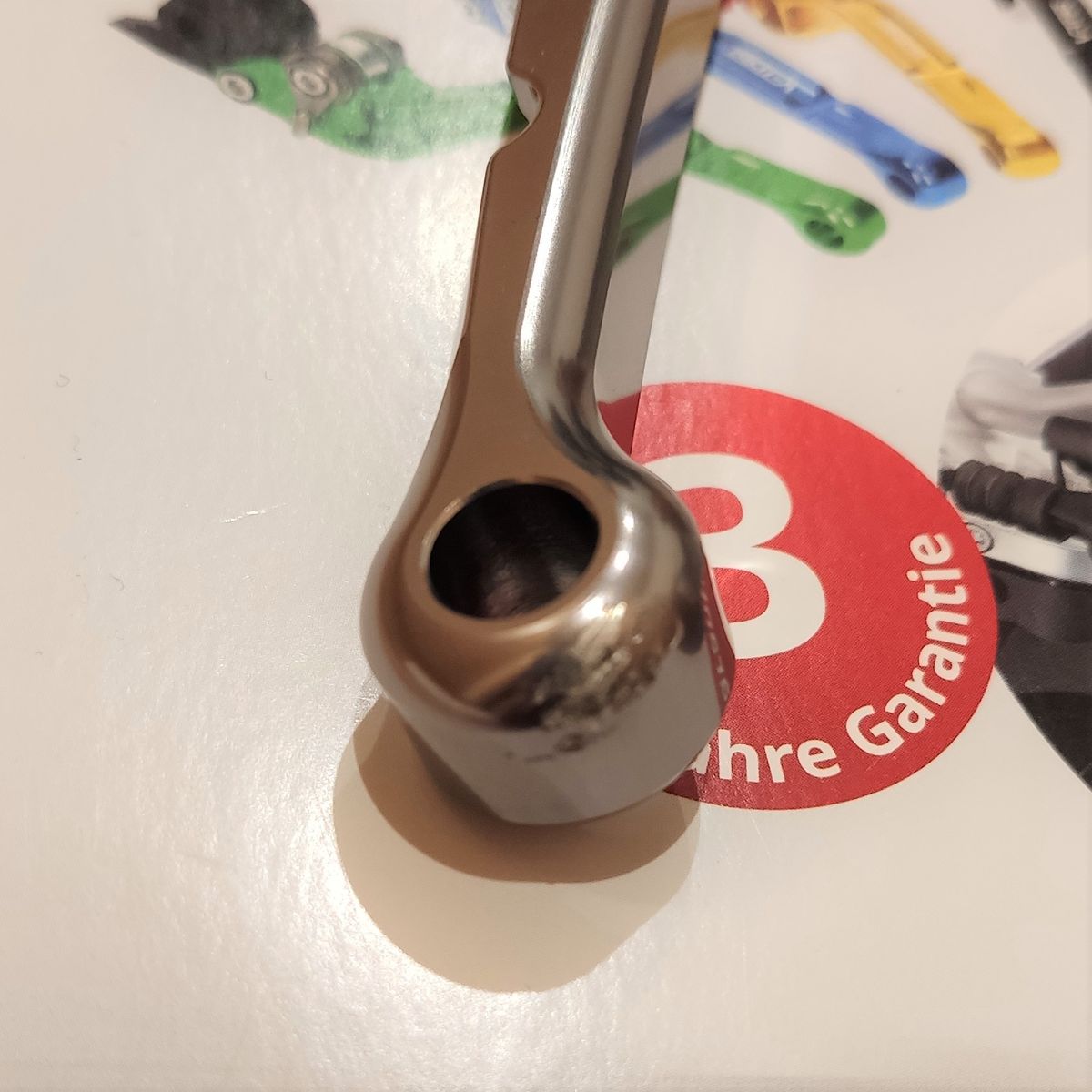 Der Kupplungshebel ist wie neu, der Bremshebel hat leichte Kratzer am Ende.