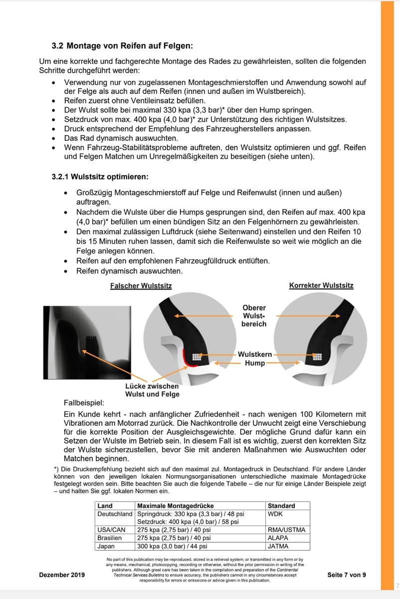 Heute habe ich mal die Handlungsanleitung von Continental beherzigt und die Reifen sich 15 Min. lang bei 4 Bar richtig setzen lassen. Ob es hilft 🤷‍♂️