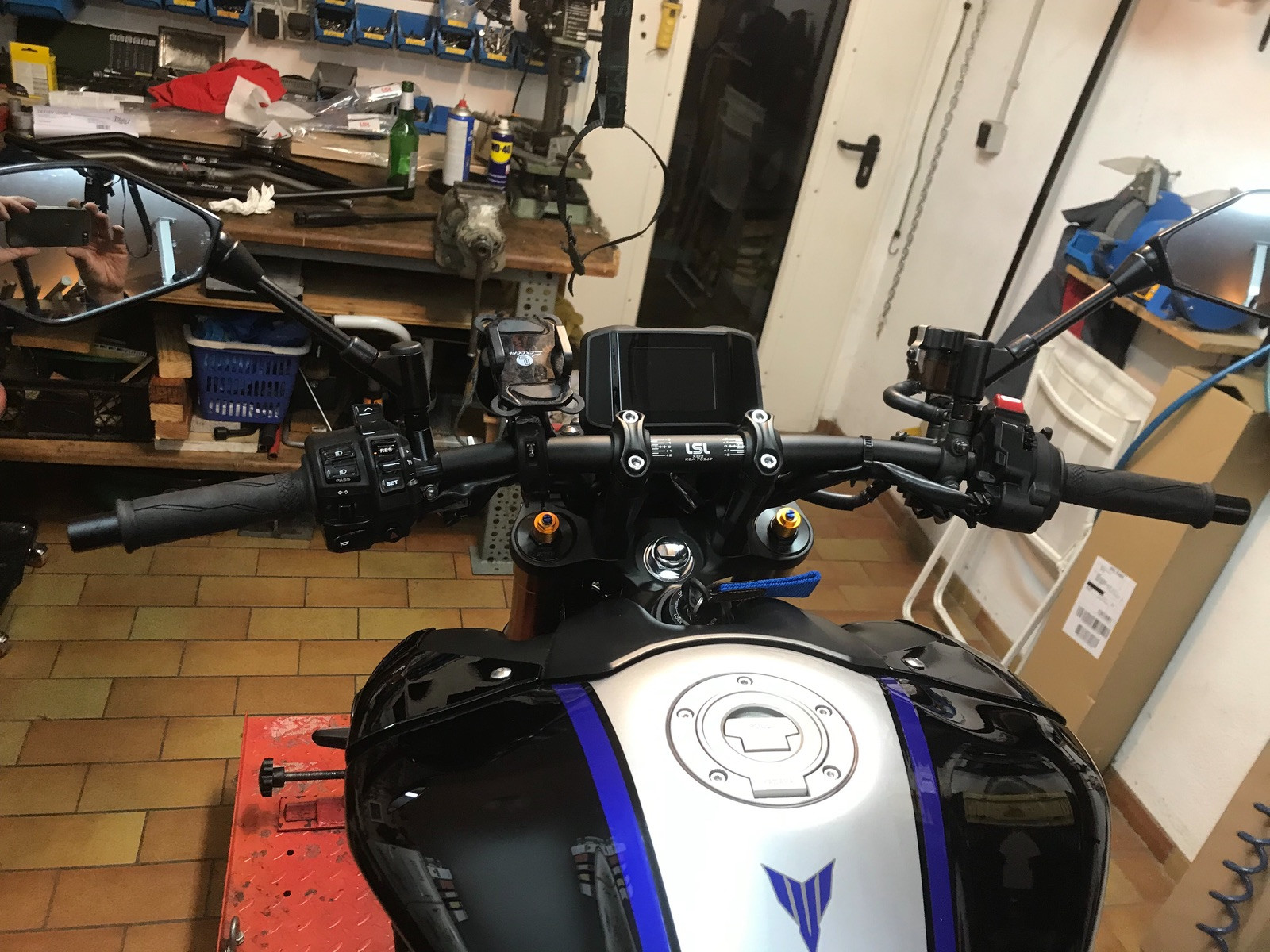 Eine gerade Lenkstange gibt es offensichtlich nicht, der LSL ist nochmals 5 mmm weniger gekröpft und vor allem ist die Konifizierung im Vergleich zum ursprünglich montierten Rizoma weiter innen. Somit kann ich die Armaturen auch weiter nach innen schieben, wenn ich mit weniger Lenkerbreite fahren möchte.