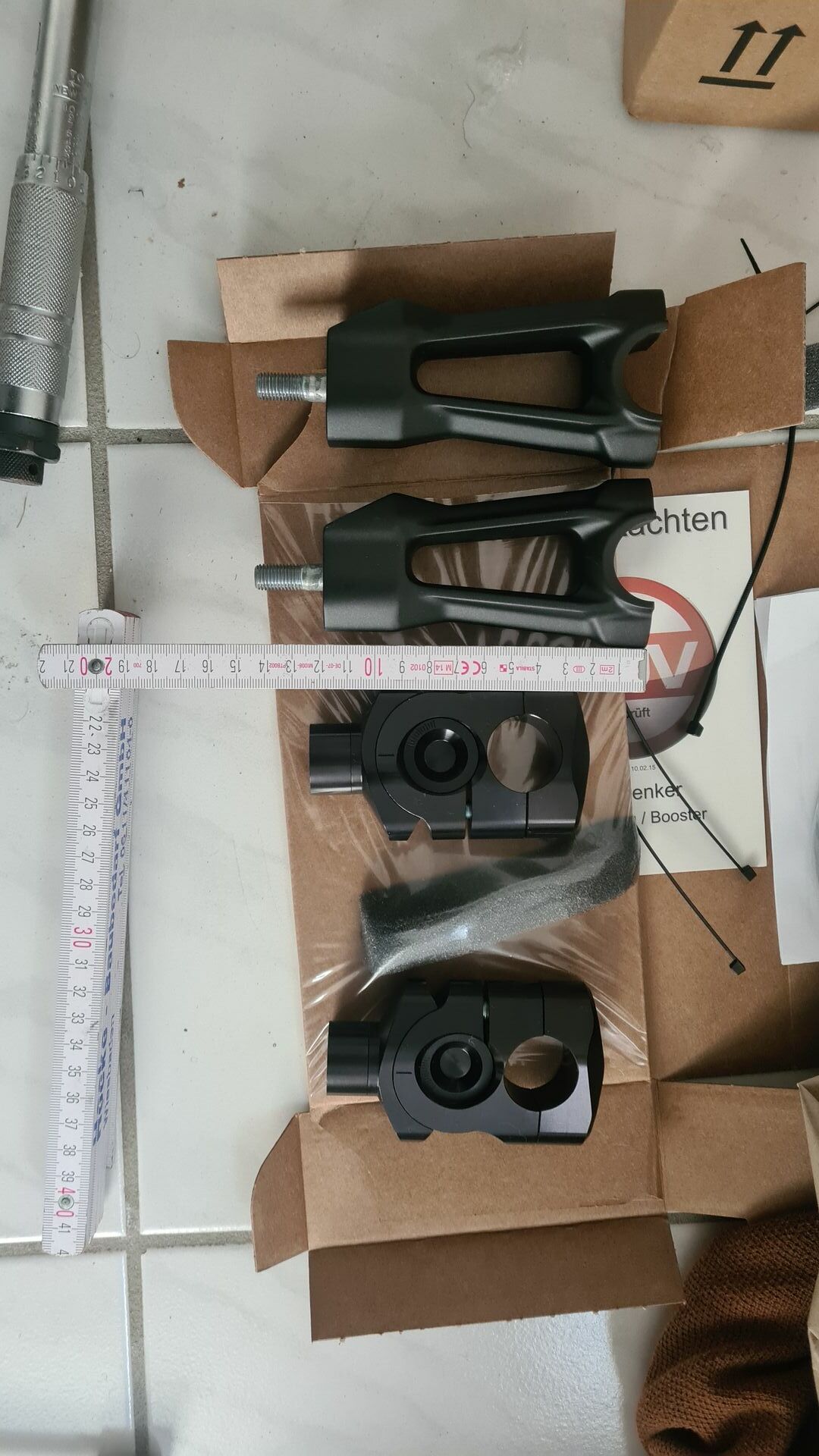 #226 So. Habe jetzt die Vario Riser mit dem original Lenker montiert. Funktioniert mit allem sehr gut. Nur den Bremschlauch habe ich ein wenig korrigiert. Aber alles kein Hexenwerk.