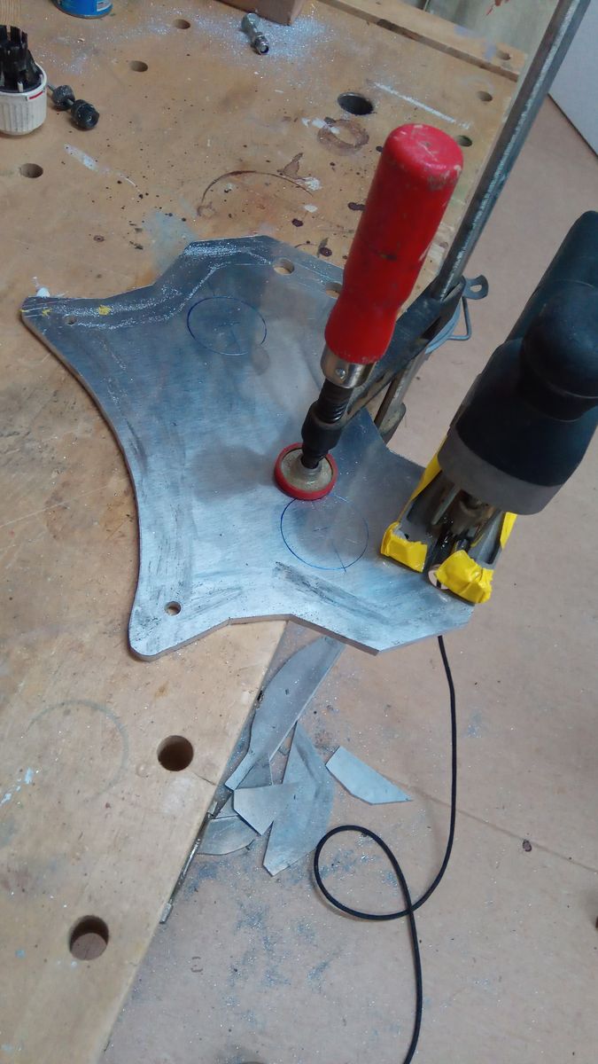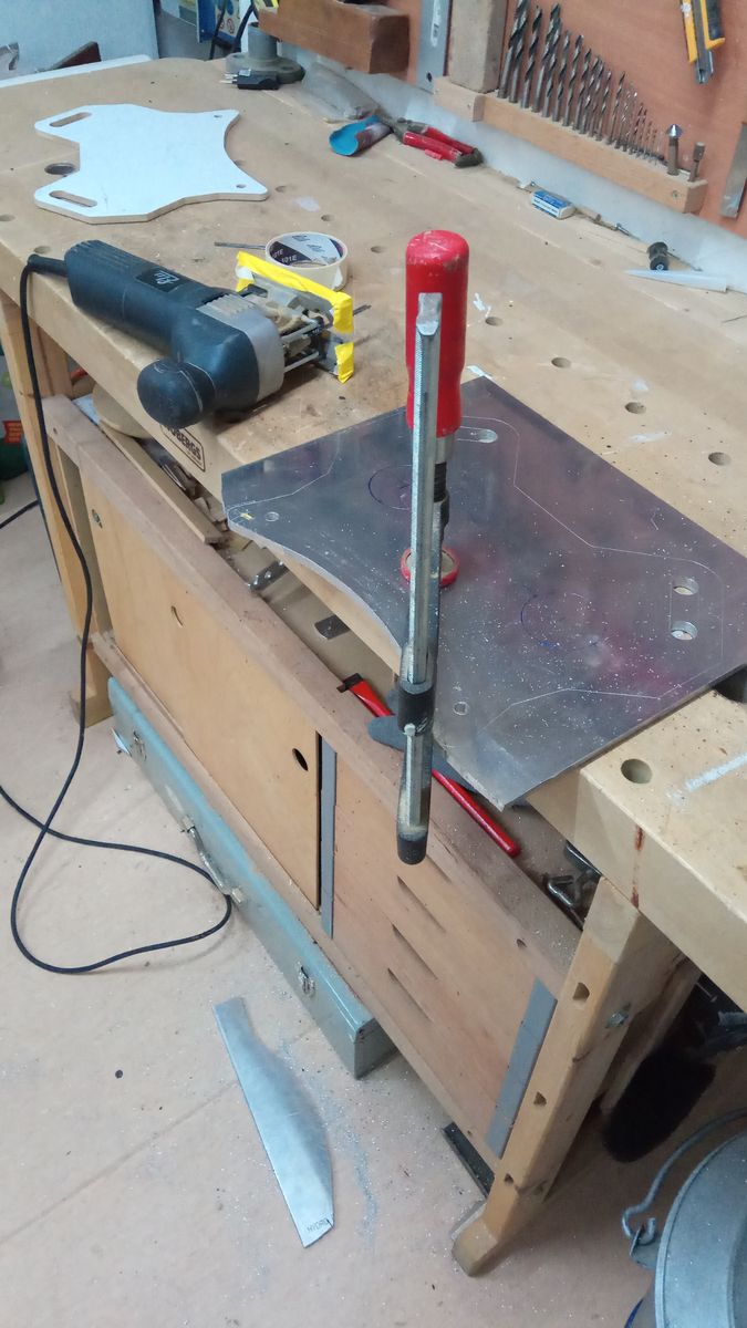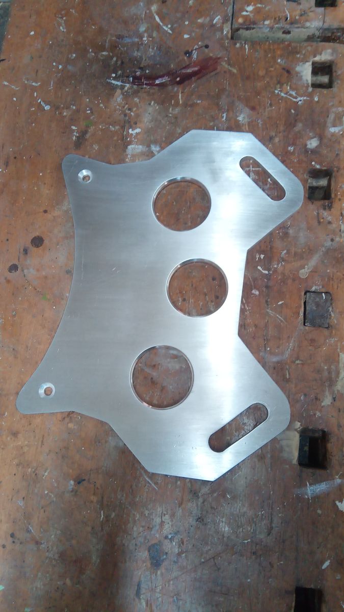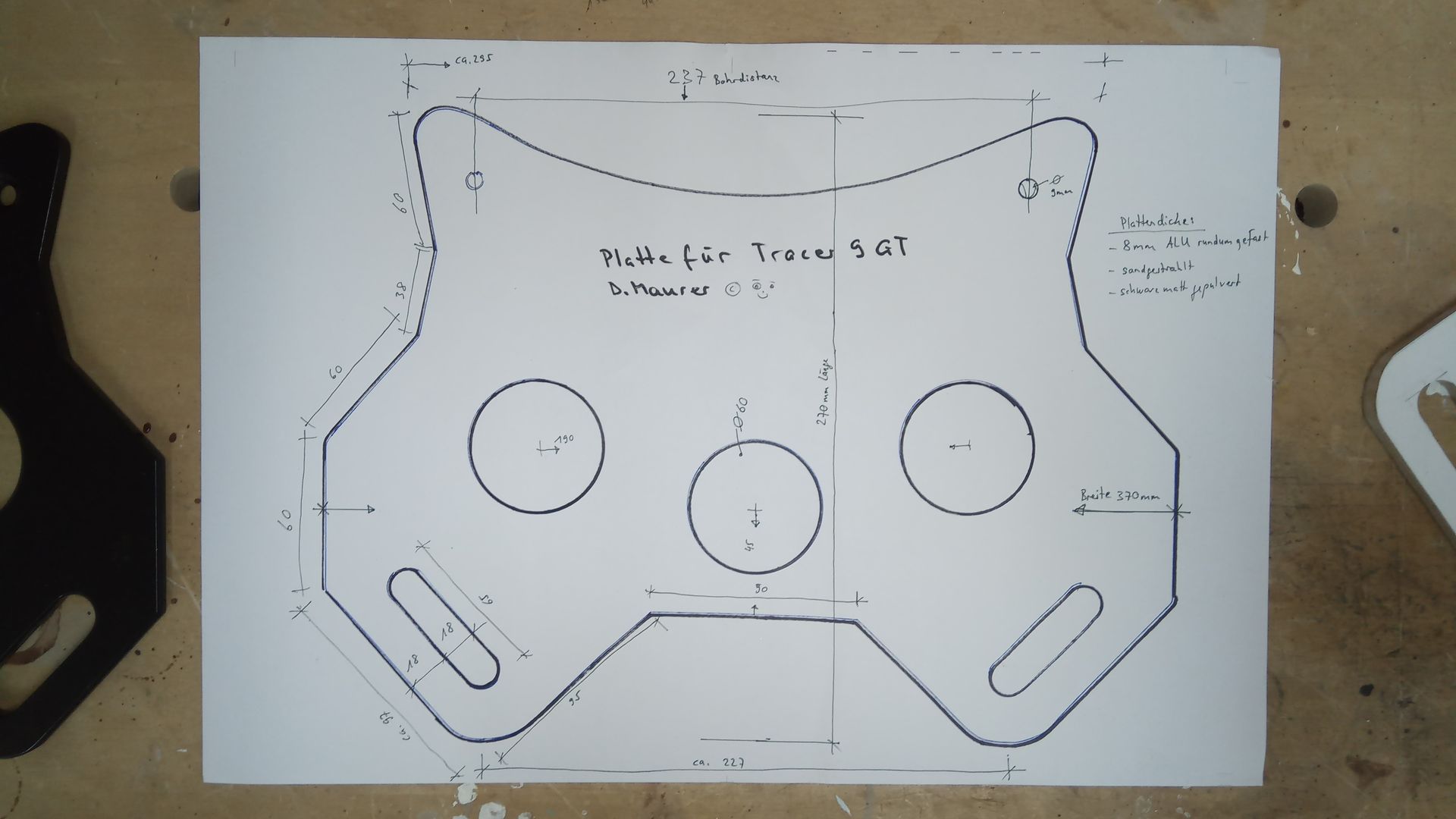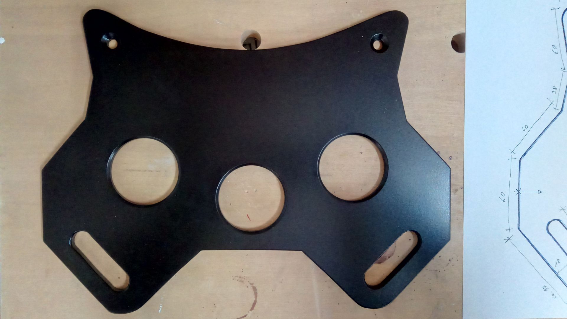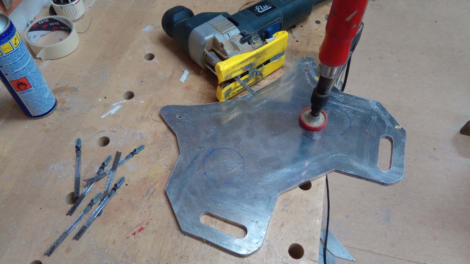 Ich habe mir eine Gepäckhalterung aus ALU 8 mm selber zugeschnitten, ausgesägt, gebohrt und dann pulverbeschichten lassen.