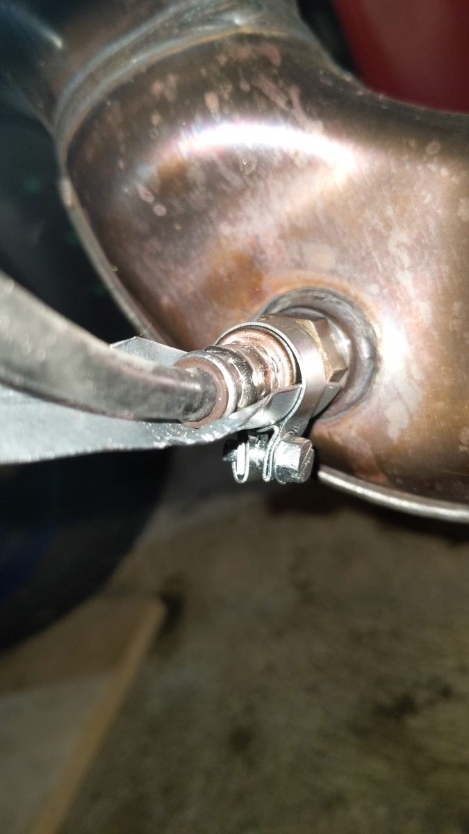 Lange rede - kurzer Sinn: Ich habe mir gestern abend aufgrund wetterbedingter Langeweile eine Lambdasondenschutz gebastelt. Aus einem 1mm Stahlblechfetzen und quick´n´dirty. Kann man bestimmt aus Edelstahl-Blech schöner bauen, hatte ich aber grad keins da. 0,8mm müssten auch reichen.