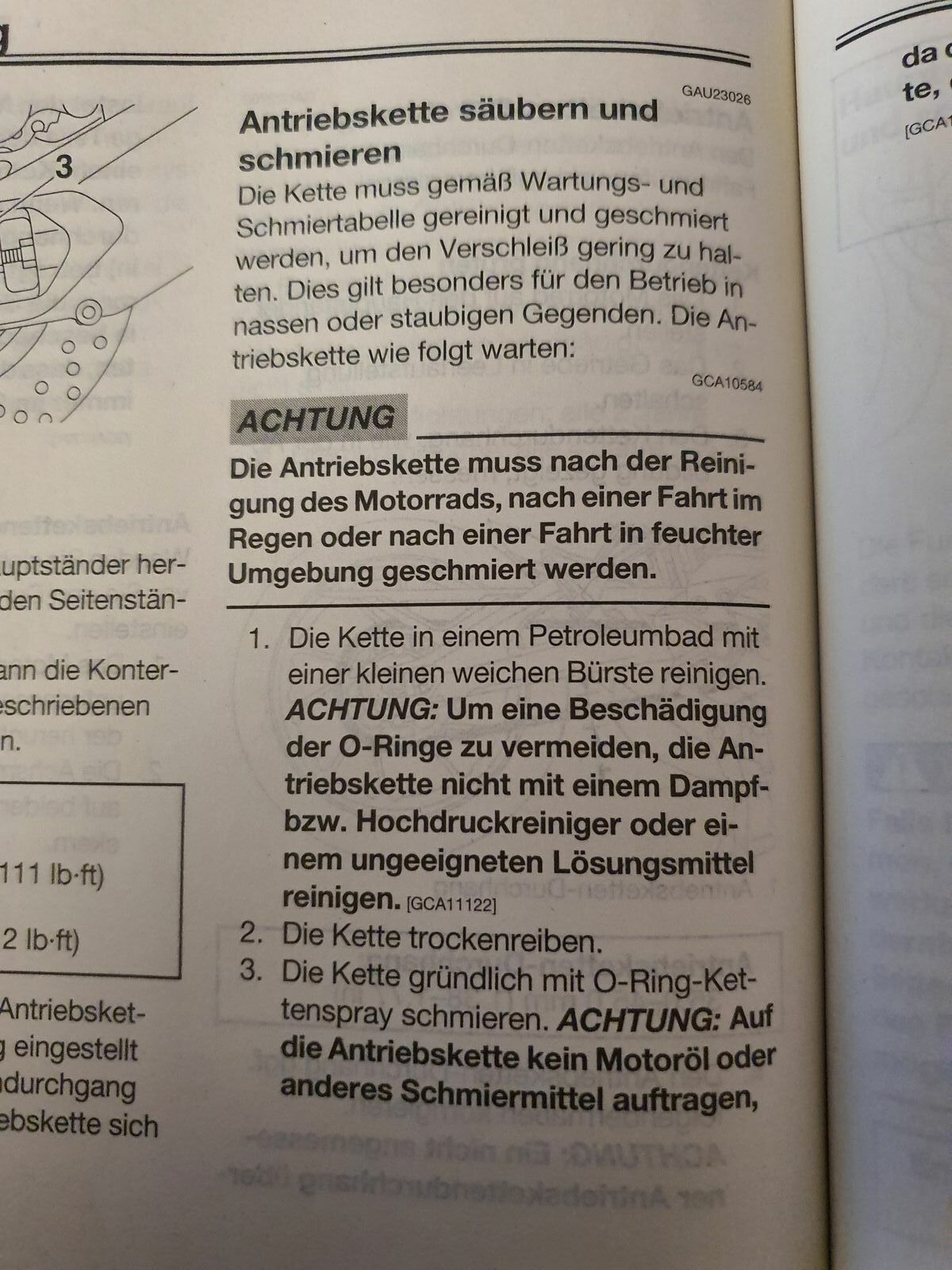 In der Anleitung steht dann, dass die Kette zur Reinigung in ein "Petroleumbad" gelegt werden soll. ![]()