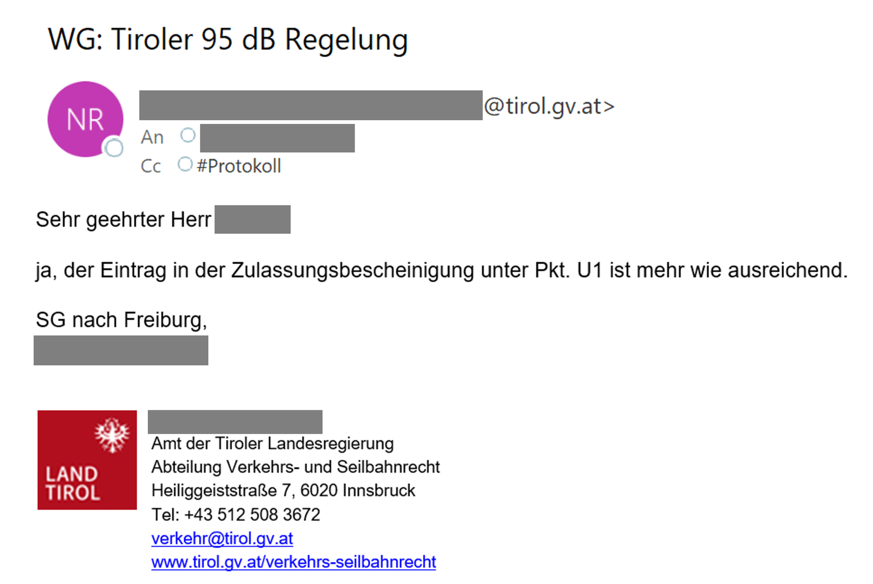 Da es mir rechtlich relevant erscheint WER diese Aussage getätigt hat, bleiben die (öffentlichen) Daten der Tiroler Landesregierung sichtbar.