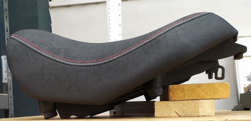 Auch die Polsterung selbst bietet jetzt mehr Komfort, ohne dass man zu weich darauf sitzt. Entsprechend wurde der Sitzbezug mit rutsch-hemmendem Material kpl. neu angefertigt. (siehe Fotos).
