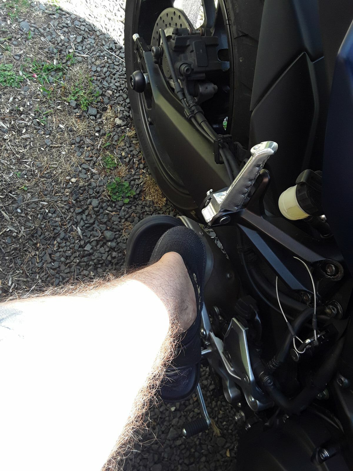 die Soziusfußrastenanlage war mir schon bei der Probefahrt ein Dorn im Auge. Ich frage mich ernsthaft, wie Yamaha auf die Idee kommt, die beiden Fußrasten so nah zusammen zu legen. Ich berühre schon bei sportlicher Fahrt die Soziusfußrasten, viele legen auch ihre Fersen darauf ab wie ich gelesen habe. Aber sobald meine Frau hinten drauf mitfährt kommt man sich zwangsläufig in die Quere.