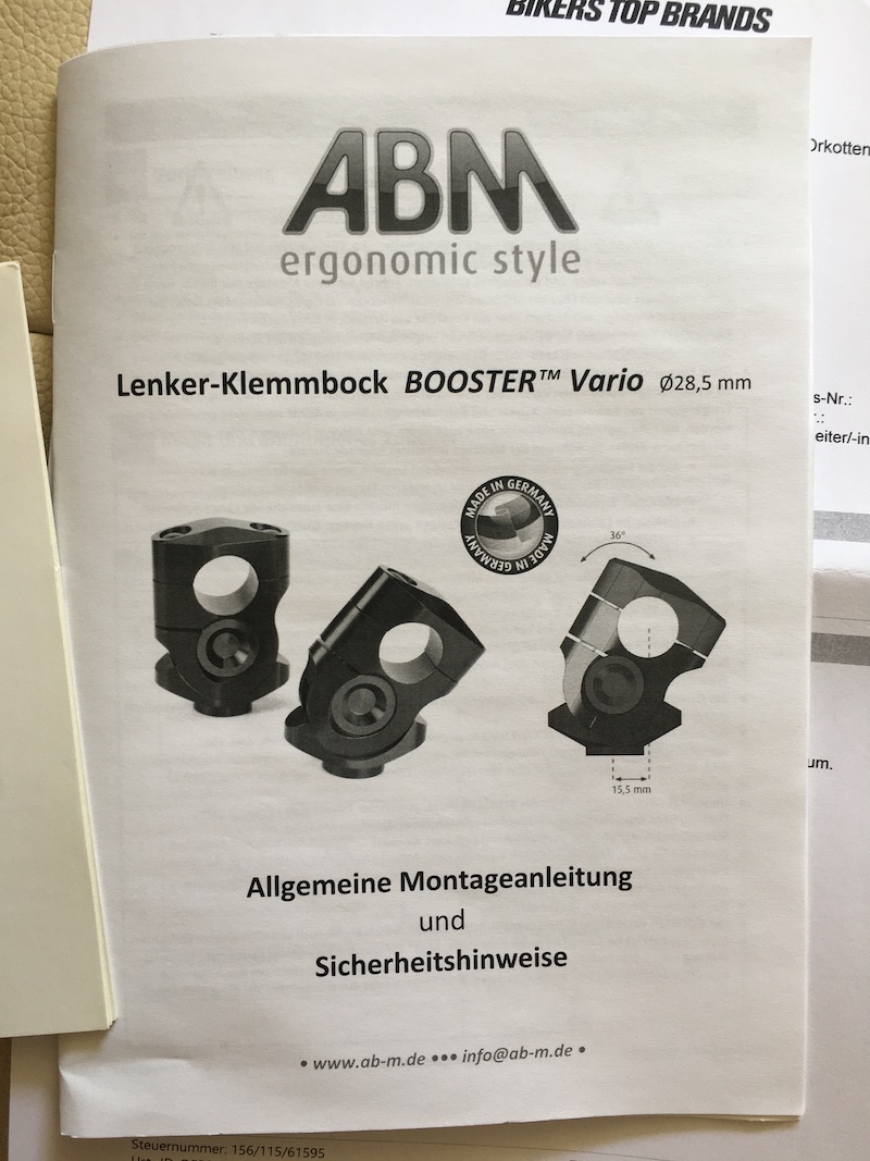 Als ich meine MT09 SP 2021 in 04/2022 gekauft habe, erhielt ich vom Vorbesitzer neue ABM VARIO RISER. Diese befinden sich aktuell noch in dem nicht geöffneten Paket.