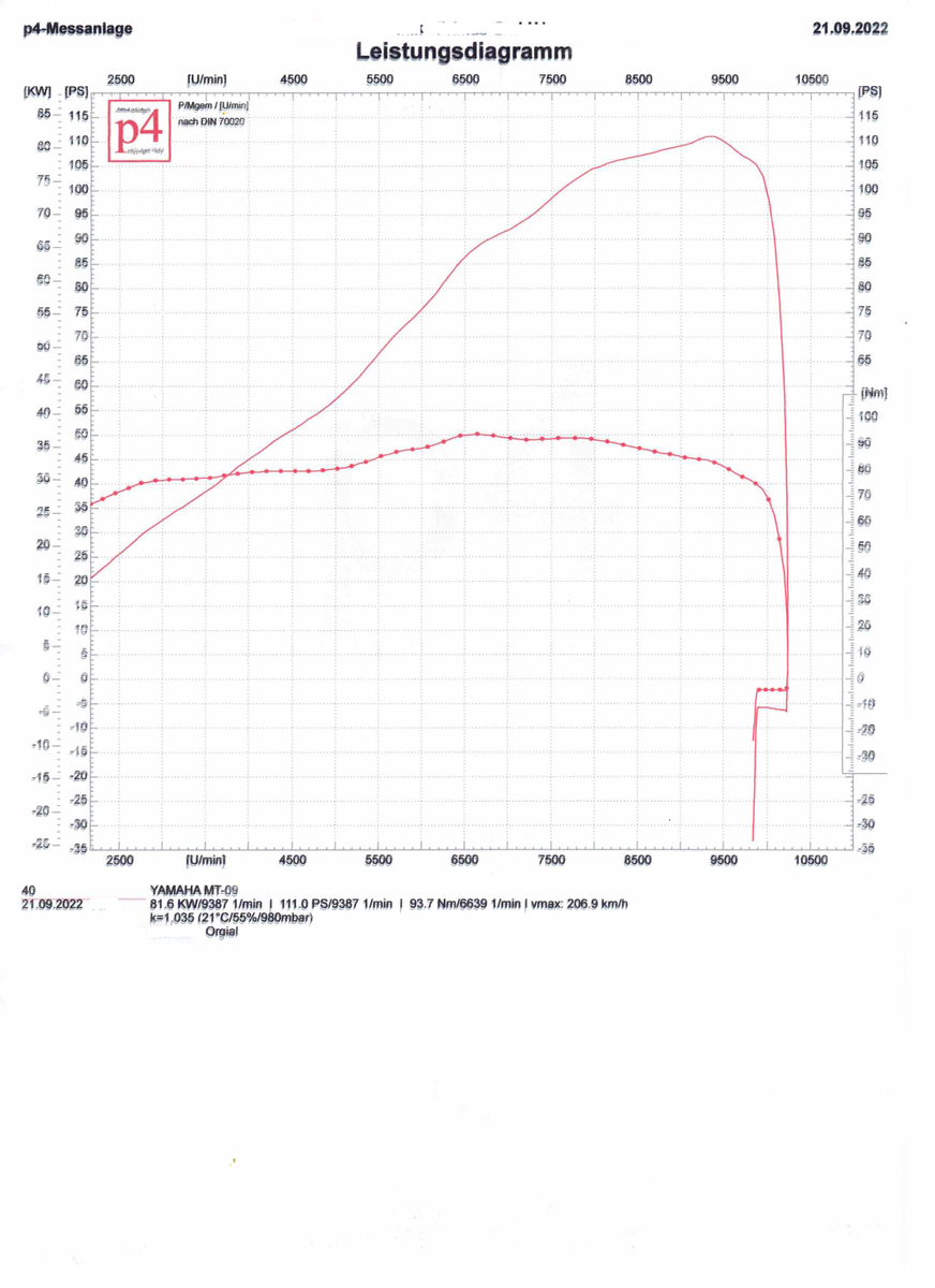 Alles anzeigenGerade die Messung im Originalzustand gemacht (5ter Gang). Auspuff ist unterwegs, vll wird das nächste Diagramm Mitte/Ende nächster Woche fertig. CH-Papiere sind inzwischen auch bei mir.