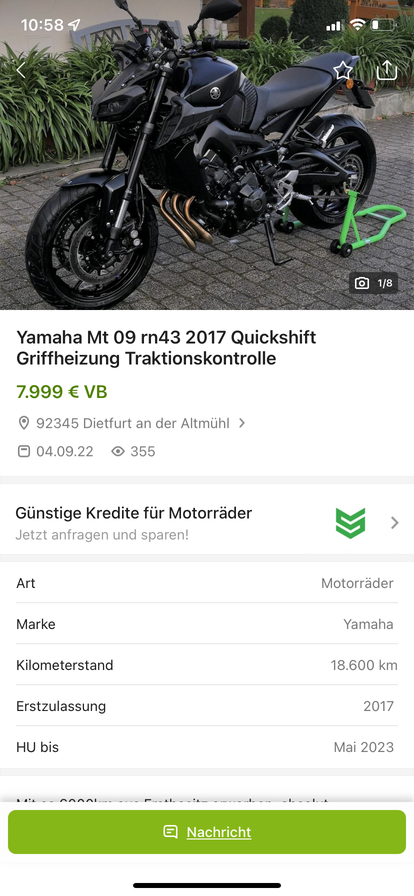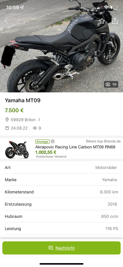 Da die MT 09 damals für ca. 8000 Euro in der Liste stand, ziemlich wenig Wertverlust für ein fast 9 Jahre altes Moped.