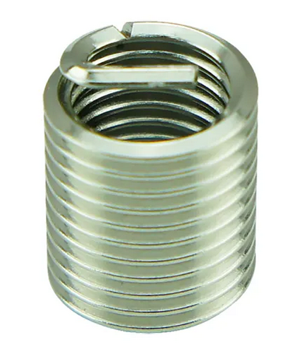 Für alle, die nicht wissen, was das ist (in Kurzform): man bohrt das beschädigte Gewinde auf, schneidet ein neues Gewinde ins Metall (eine Nummer größer als ursprünglich), dreht dann mit einem Spezialwerkzeug eine Spirale oder Feder in das Gewinde ein. Dann muss man nur noch den Mitnehmer dieser Spirale, der das Eindrehen mit dem Spezialwerkzeug ermöglicht, mit einem anderen Werkzeug abbrechen (Sollbruchstelle ist vorhanden).....feddich. Der Vorteil liegt auch darin, dass man dann in weichen Metallen (wie eben Alu) eine Stahlgwinde hat und die Gefahr, dass man bei mehrmaligen Heraus - und Reinschrauben dieses Gewinde zerstört, erheblich geringer ist. So sieht das einzudrehende Teil aus ....