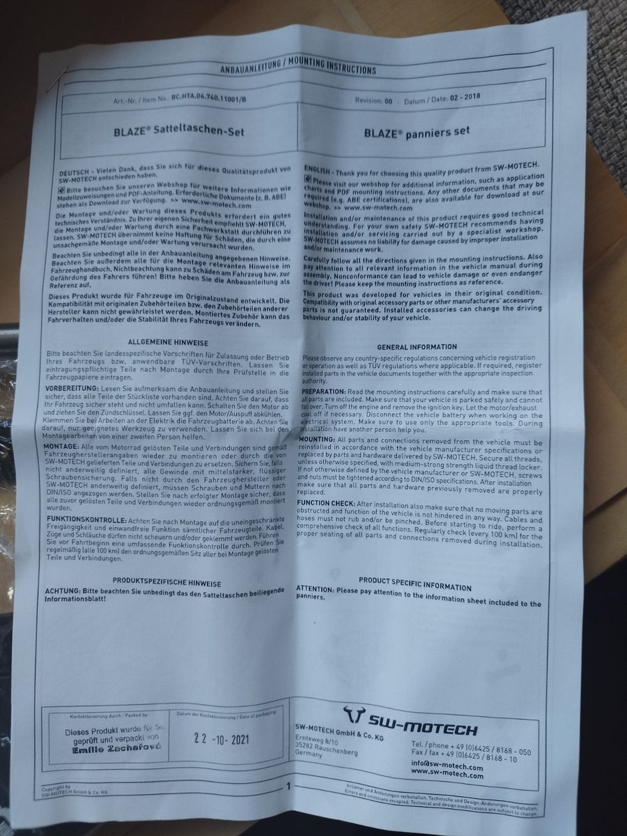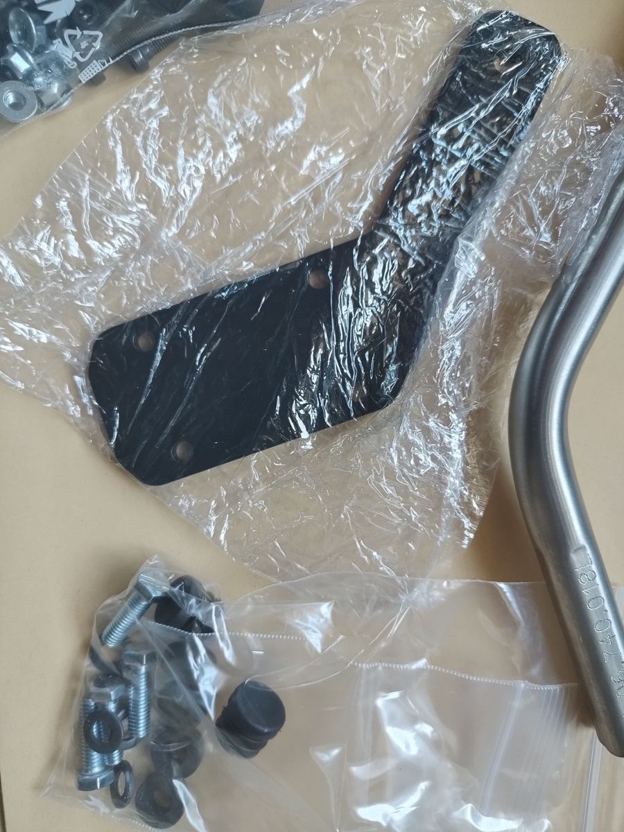 Achtung: es handelt sich ausschließlich um die Teile für die LINKE Motorradseite. Da mir Teile dazu von der rechten Seite abhanden gekommen sind, musste ich diese beim Hersteller nachbestellen. Dieser verkauft jedoch keine einzelnen Ersatzteile, so dass ich das komplette Anbauset für beide Motorradseiten kaufen musste...