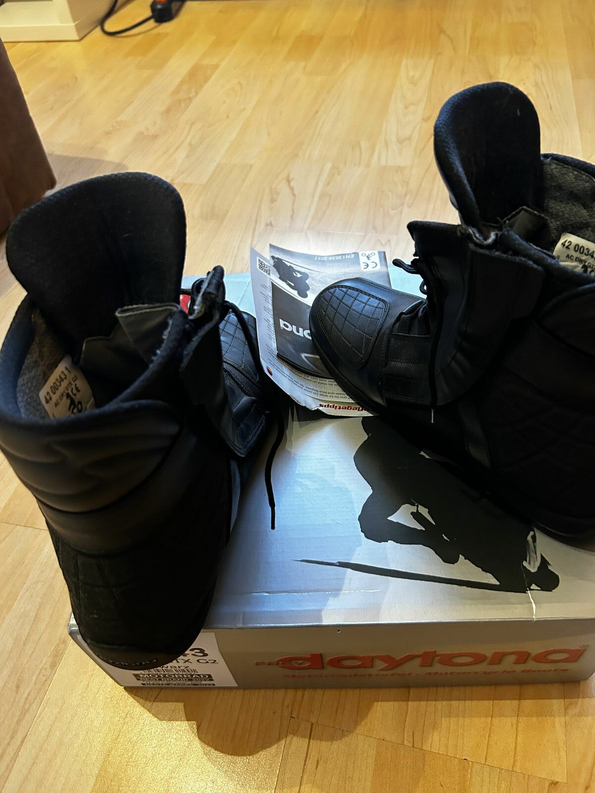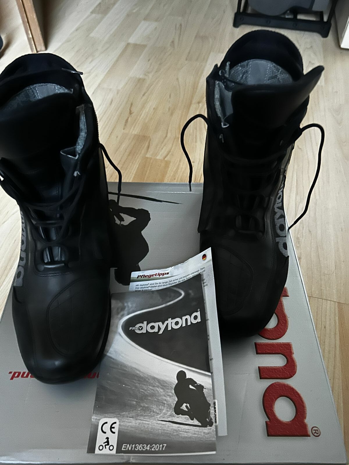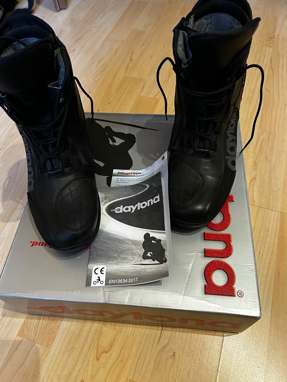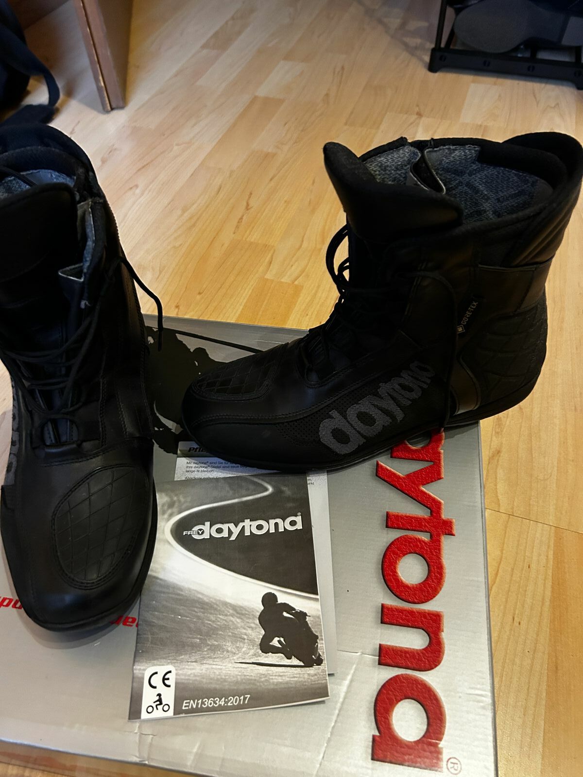 Verkaufe Motorradstiefel Daytona AC Dry GTX2. Die Stiefel habe ich ca. 5 x getragen; jedoch habe ich mir die zu klein bestellt. Die Größe ist 42. Die Stiefel sind top in Ordnung. Der Versand erfolgt im Originalkarton meiner neuen Stiefel.