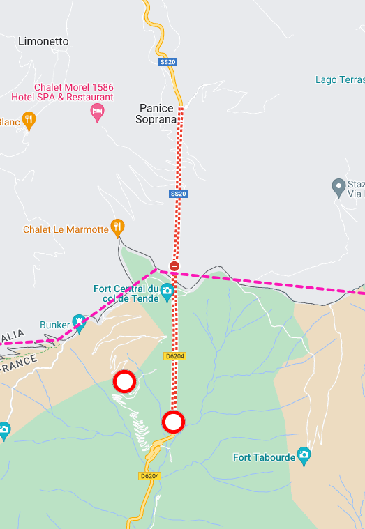 Ein schweres Unwetter hat 2020 das Roya-Tal und auch Tunnel und die Suedrampe des Passes (Frankreich) wohl nachhaltig zerstoert.