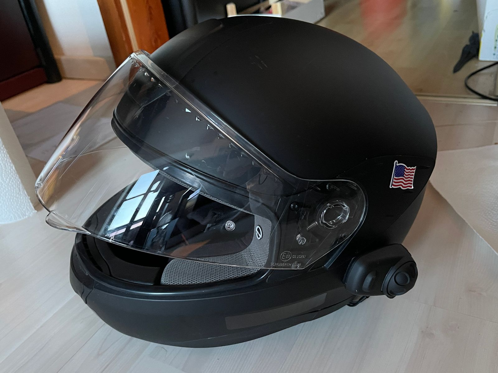 Der Helm ist mit einem SENA SMH5-FM ausgeruestet, also klasse per bluetooth mit anderen Intercoms, Handy, Navi verbindbar;