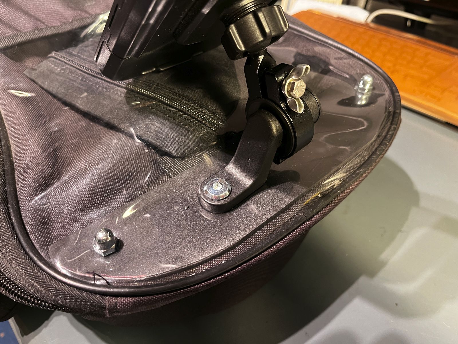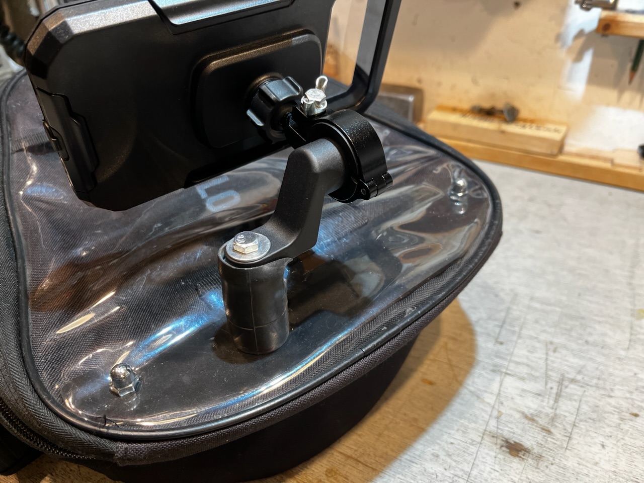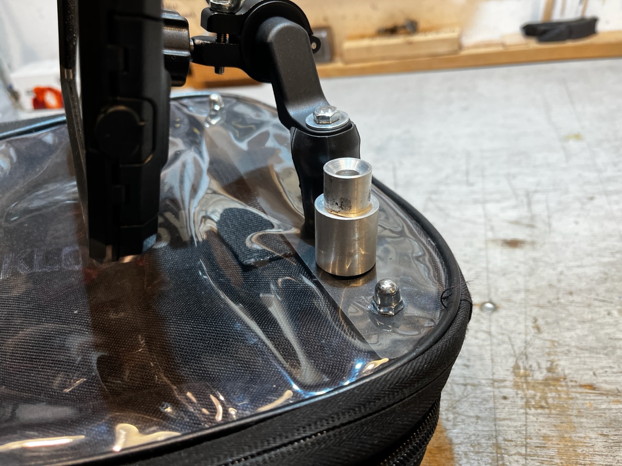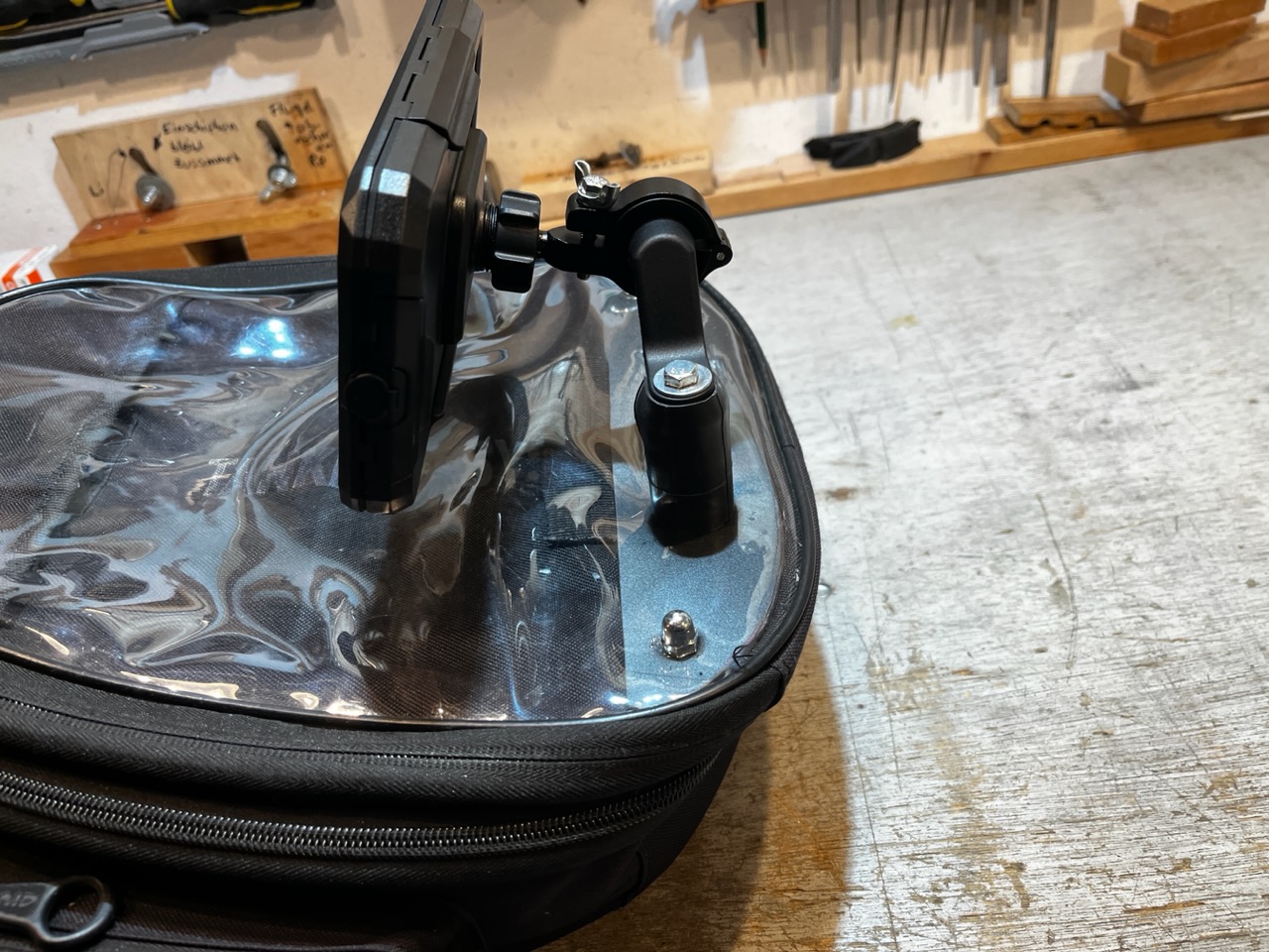 Hab mir noch ne Flügelschraube gebaut, um die Klemmung an der "Spiegel"-Halterung werkzeuglos zu justieren.