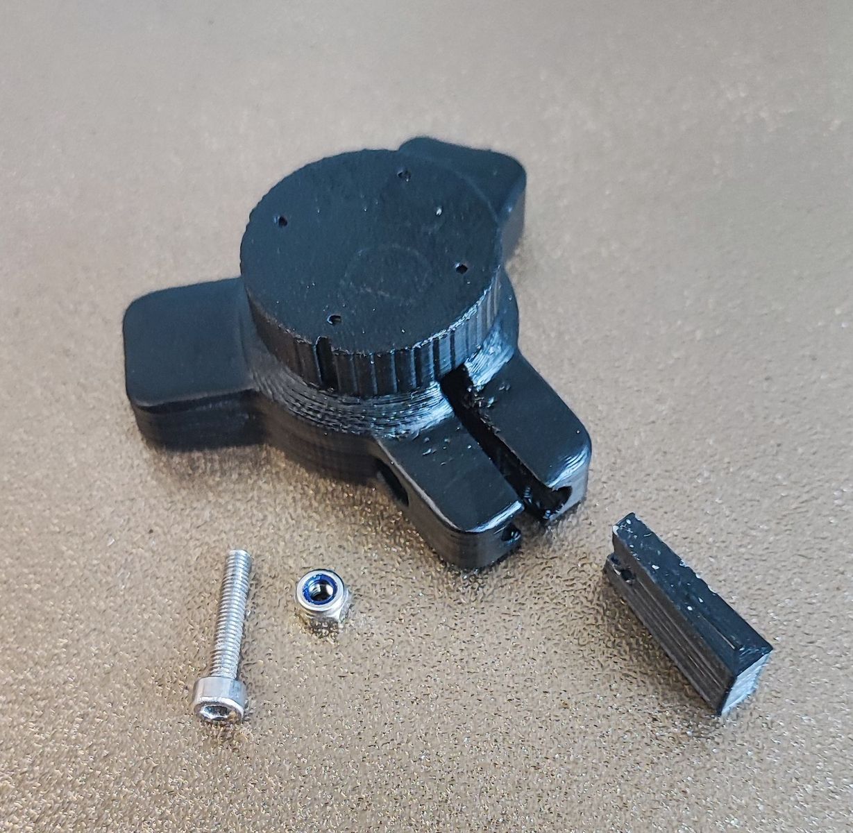 Ausser dem gedruckten Teil, benötigt man nur nur eine Zylinderkopfschraube DIN912 M3x16