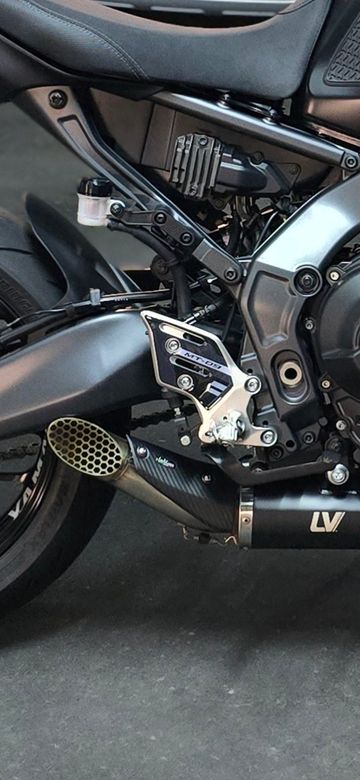 Der Topf hat im hinteren Bereich eine Halterungslasche. Im vorderen Bereich ist die Anlage jedoch ein wenig zu weit links (Fahrtrichtung). Die Anlage hat ca.1mm Spiel, wenn jedoch wenig Druck am Topf ausgeübt wird schlägt er gegen die Ölwanne. Ich habe jetzt einfach eine Hitzeschutzmatte welche ca.3mm hat dazwischen geklemmt, so sitzt die Anlage bombenfest. Mit ausrichten ist da nichts, habe genug lange geübt. Die Anlage geht so Präzise zwischen Ölwanne und Hauptständer durch, da muss nur ein gestecktes Krümmerrohr eine kleine Tolleranz haben dann wird es mehr als knapp.