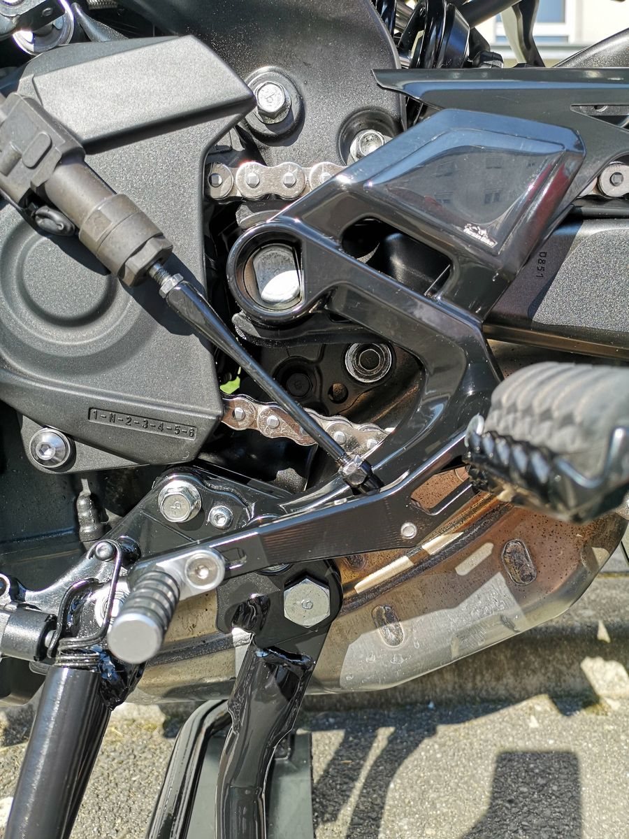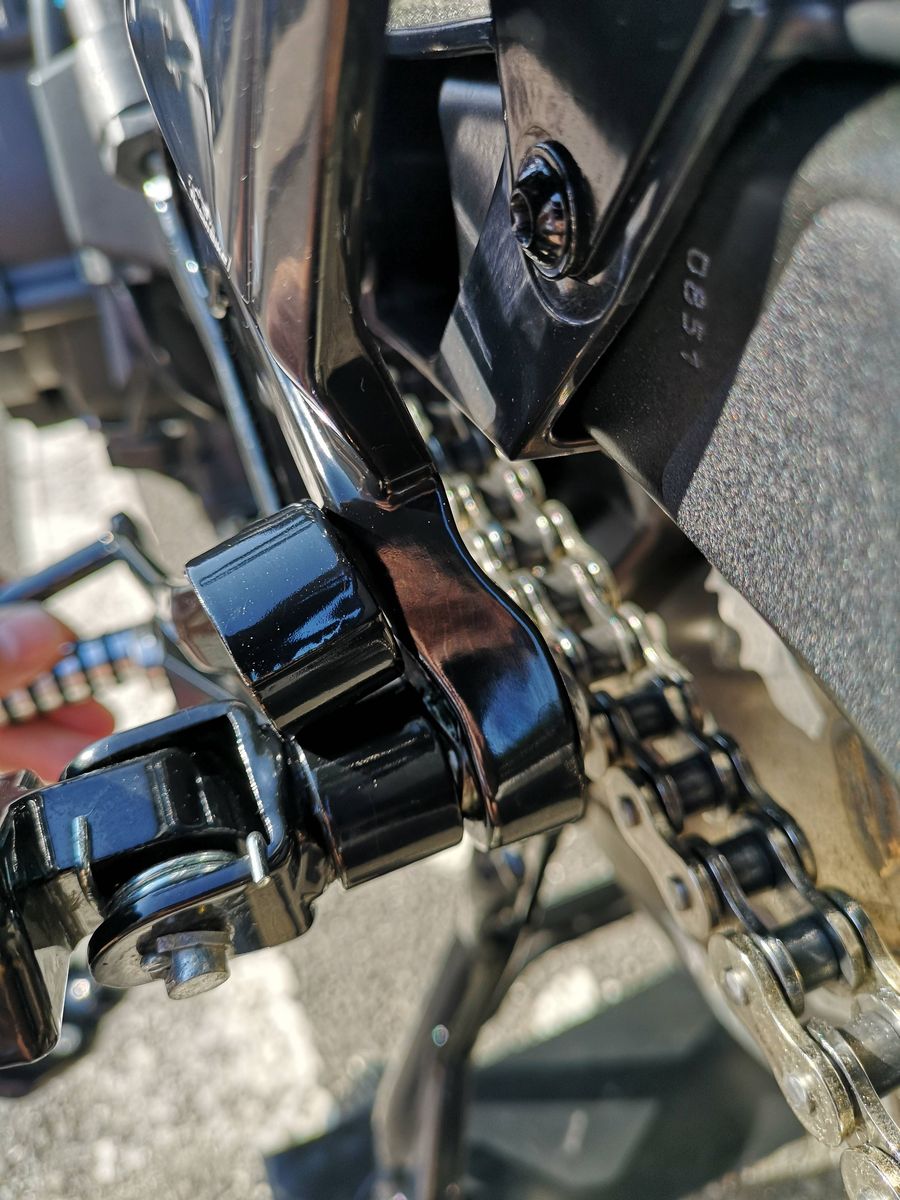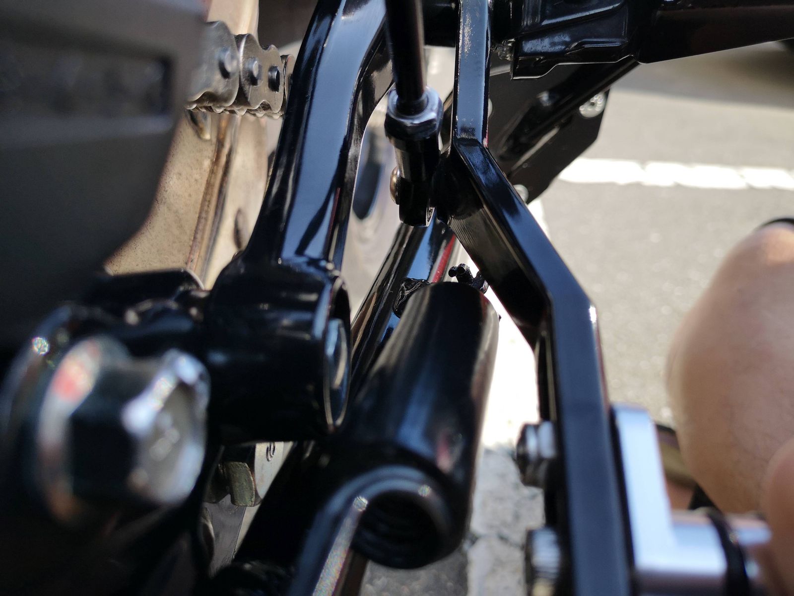"Einfach" die Halterung abnehmen, ist auch nicht, weil die Hinterradschwinge mit dran hängt.
