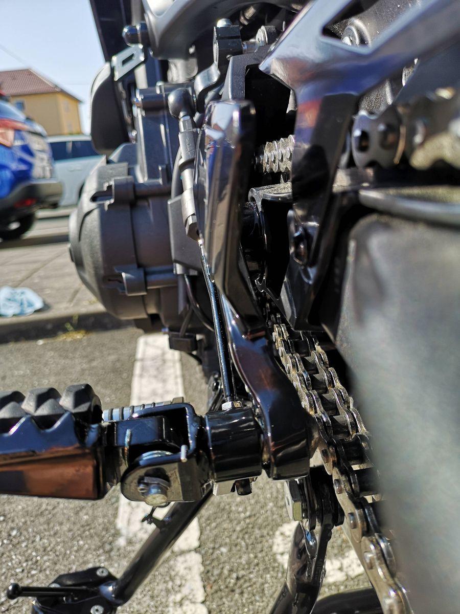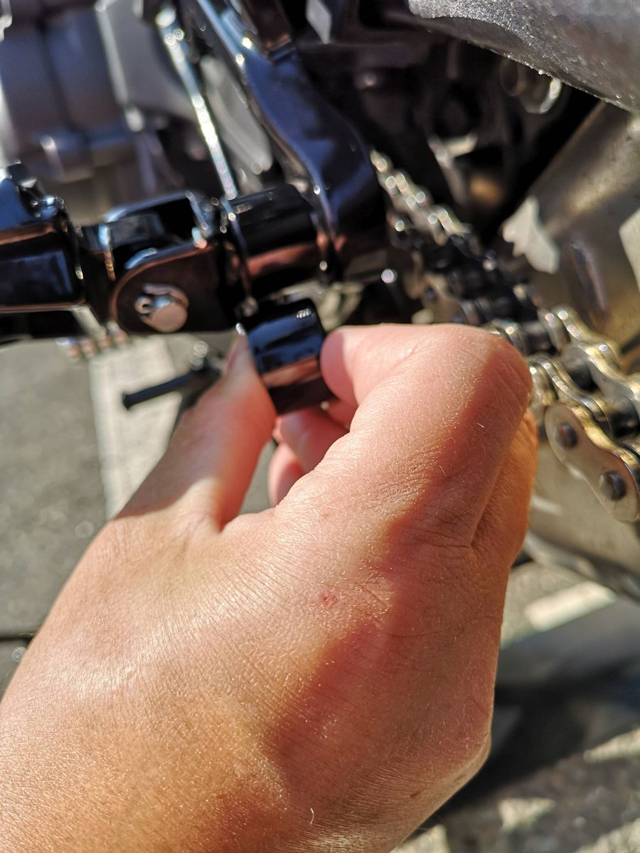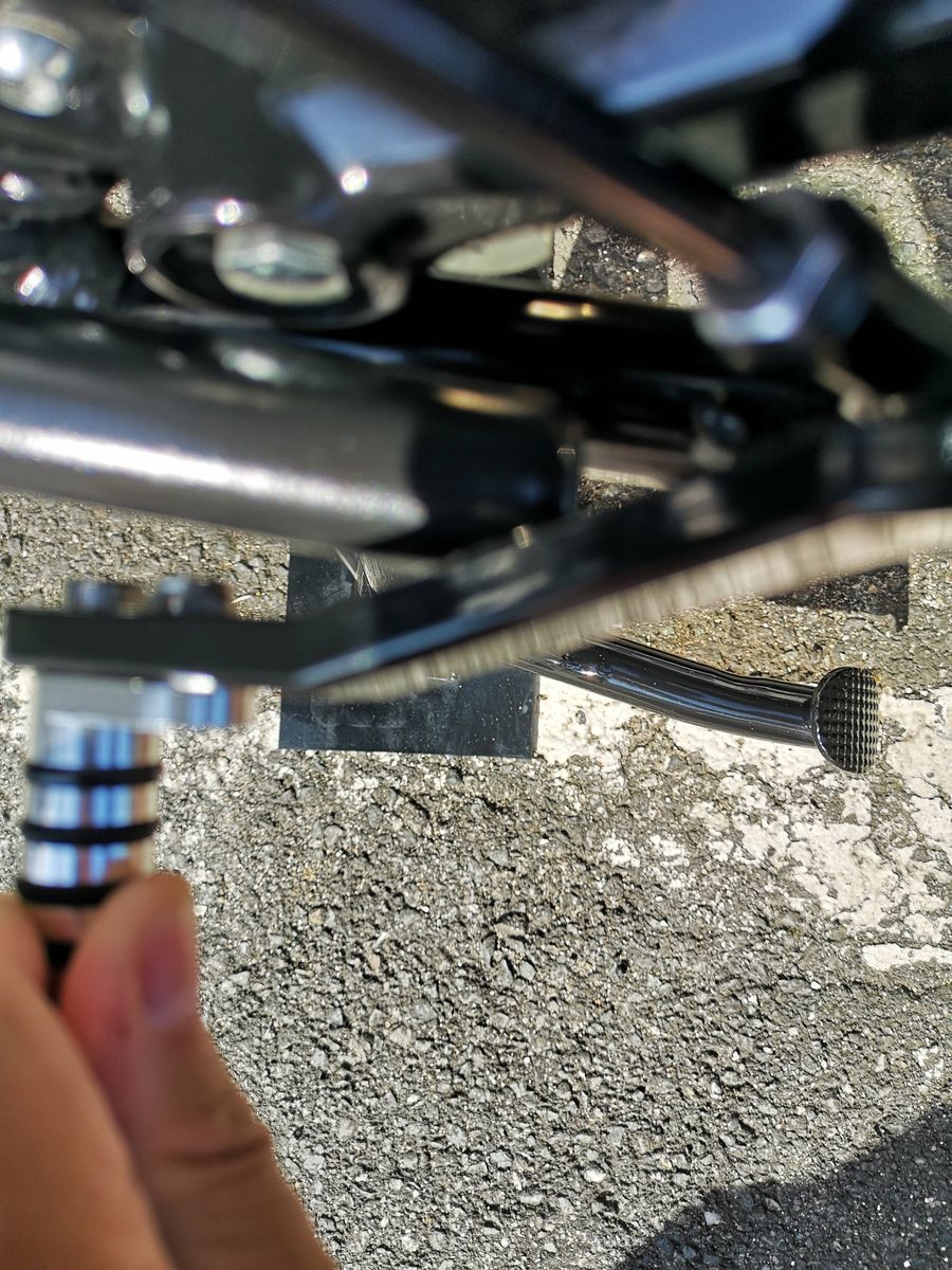 "Einfach" die Halterung abnehmen, ist auch nicht, weil die Hinterradschwinge mit dran hängt.